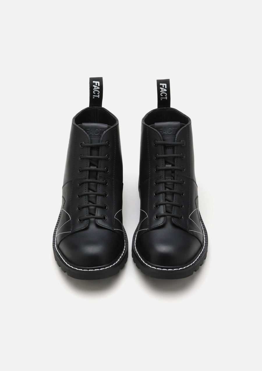 A collaborative item with FACT., a footwear brand rooted in music subculture. The NH x FACT. MNKY is based on the iconic Monkey Boot first crafted in the Eastern Bloc, it was later adopted by Mods, Skins, Punks, and Goths from the 1960s through the 1980s. Merging its utilitarian heritage with a premium redesign, the NH x FACT. MNKY pays tribute to the subversive energy of these generational subcultures. Product highlights include a rectified smooth leather upper, a classic tractor sole design, and branded detailing with refined trim applications.