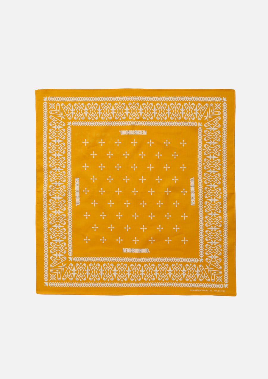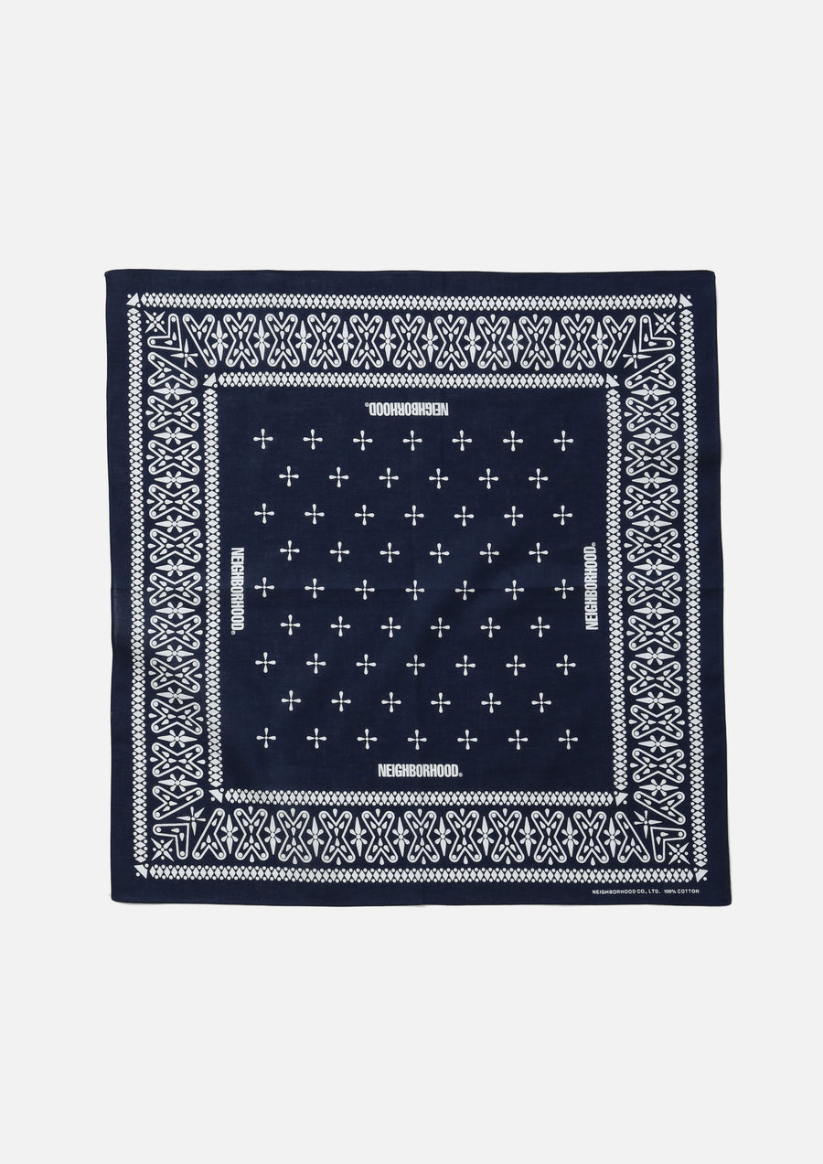 Bandana made from cotton compas fabric. Features an original cross pattern print, with rolled-hem stitching at the edges.