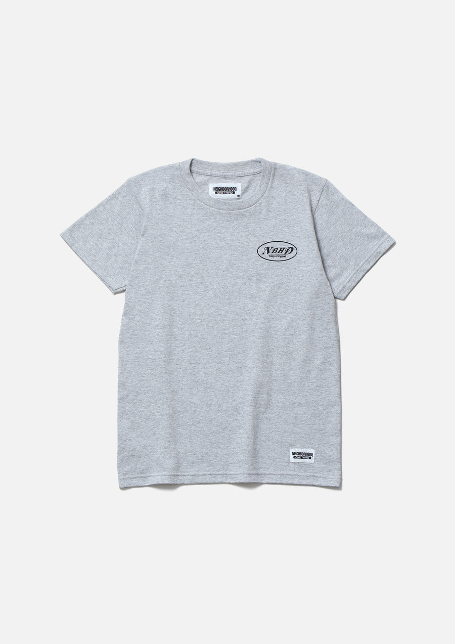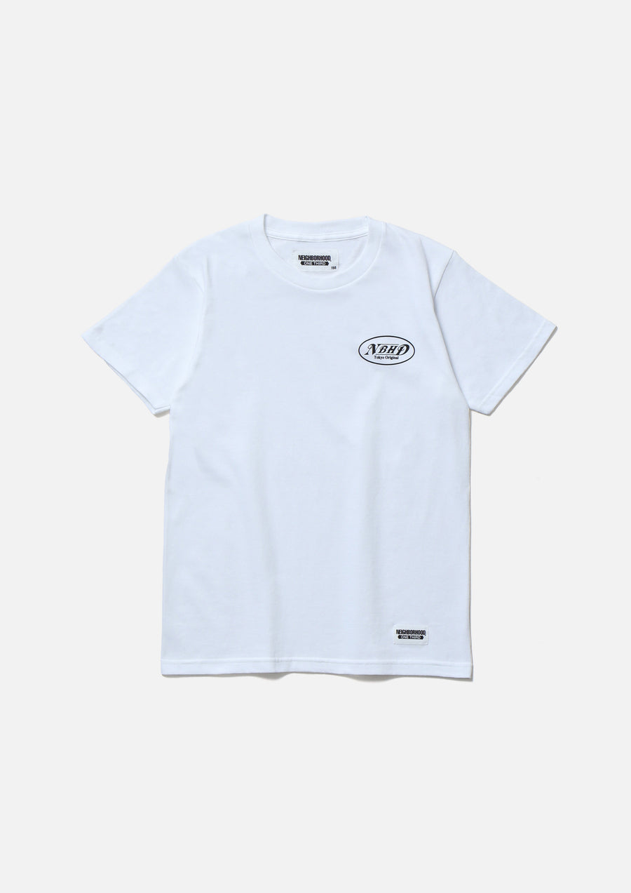 A short-sleeve T-shirt made of a 5.6oz heavyweight body. Graphic prints on the left chest and back. A name tag is placed on the left hem.