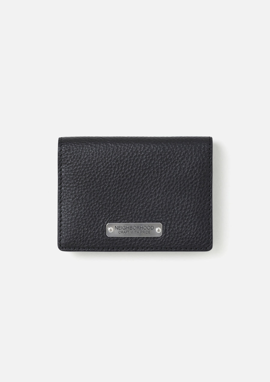 A card case made from Italian shoulder leather, characterized by natural color variations and a unique grain texture, achieved using dye-only finishing. Storage includes two gusseted card pockets and one standard card pocket. Features an original stainless steel plate and a foil-stamped logo inside.