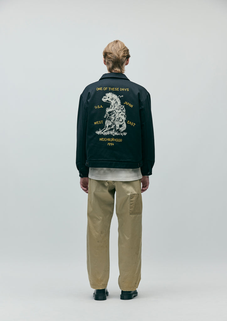 A tote bag combining durable No.4 canvas and full-grain leather finished with oil-dyeing. The long handles allow for shoulder carrying. Equipped with an internal zippered pocket. Printed logo and cowboy motif. One-wash finish. A collaborative item with ONE OF THESE DAYS, led by Los Angeles based artist, Matt McCormick.