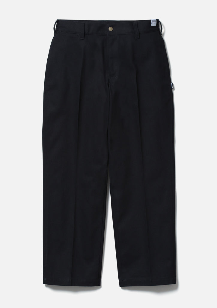 A work shirt made from striped fabric with a soft feel and easy-care polyester blend. Features a contrasting solid fabric on the collar and pocket. Embroidered logo on the left chest. Equipped with original four-hole buttons, a brand tag on the placket and side seam. One-wash finish.