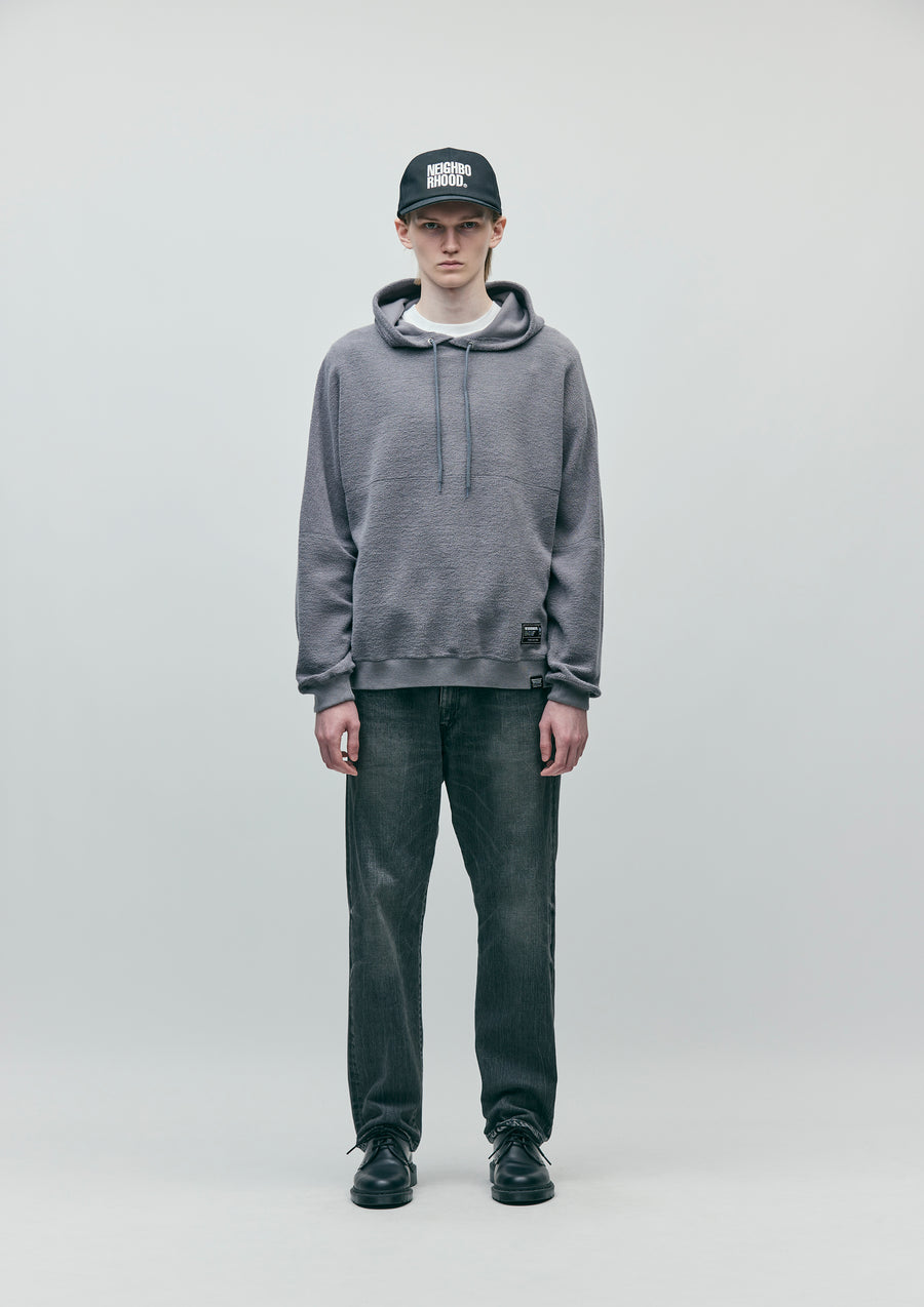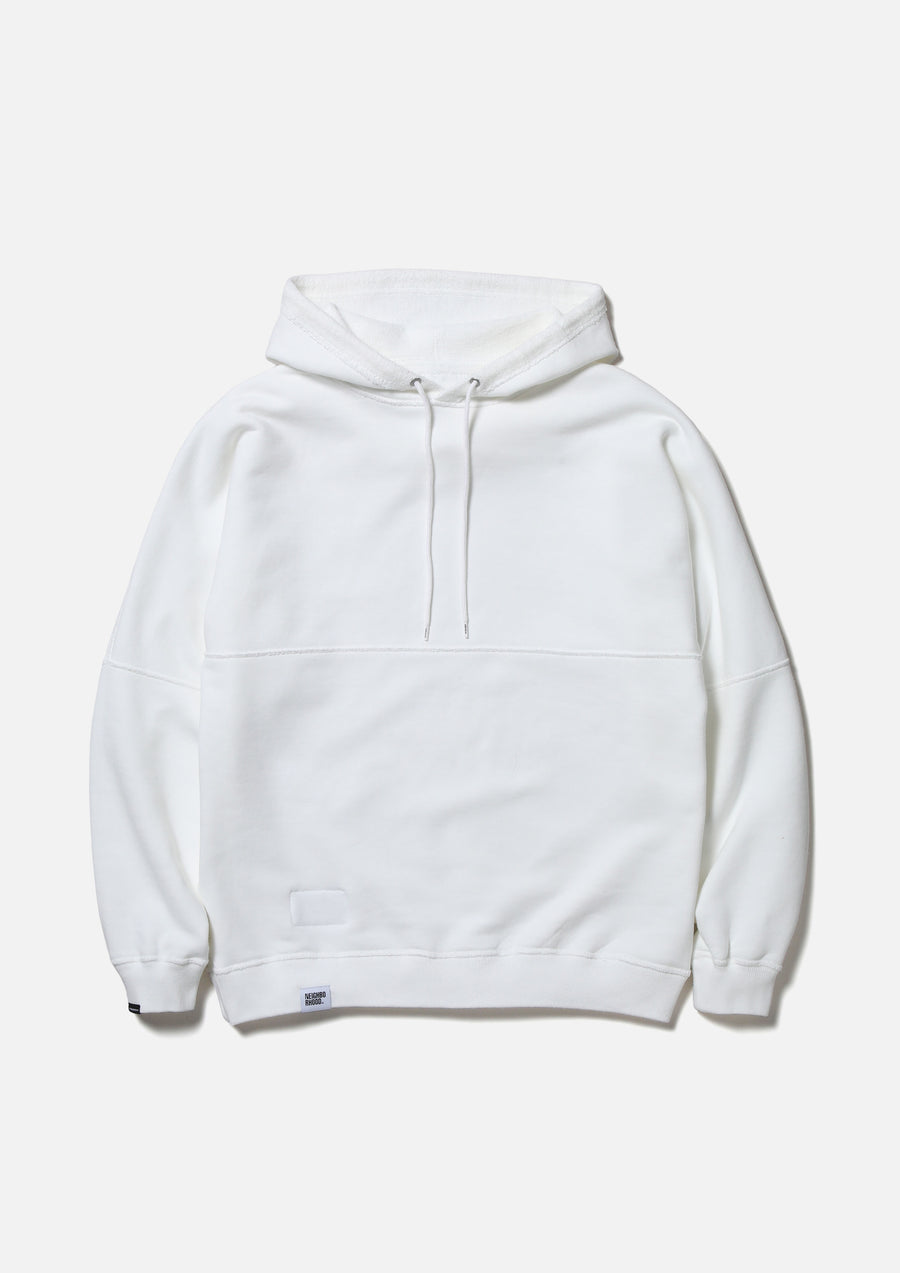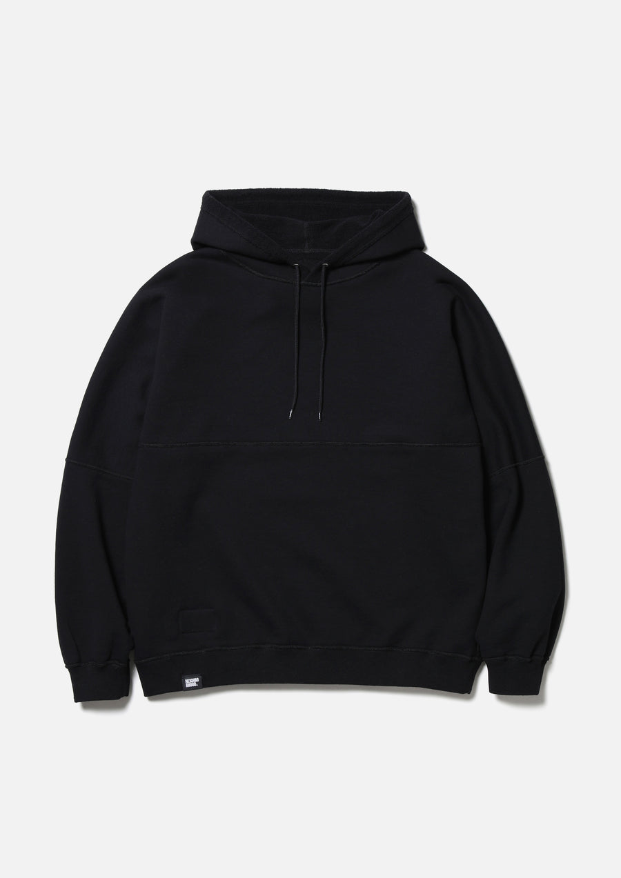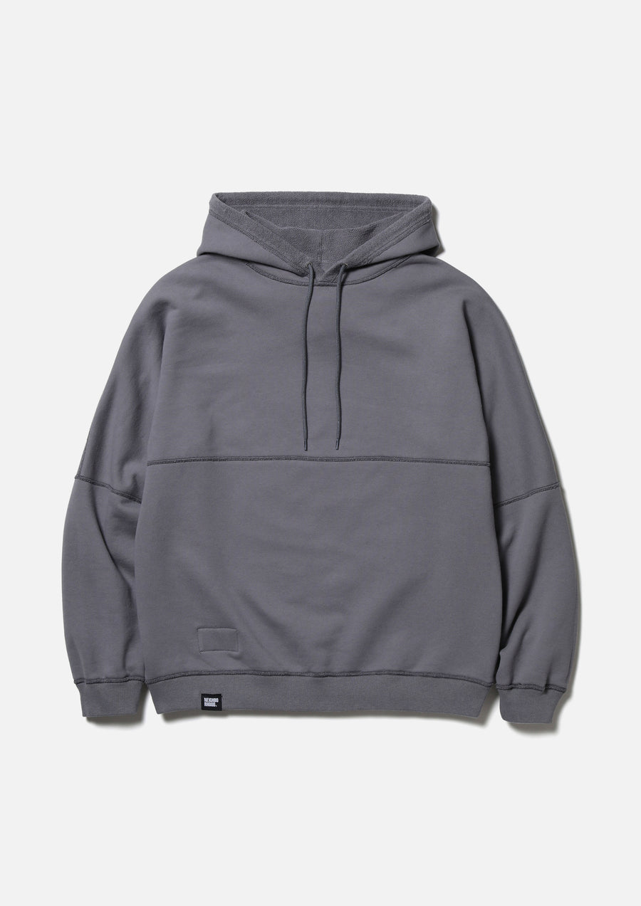A reversible pullover hoodie utilizing the pile side of tightly knit fleece-backed fabric. Designed with distinctive paneling. Features a logo print on the jersey side and a brand tag on the pile side. Includes a brand tag inserted in the cuff.