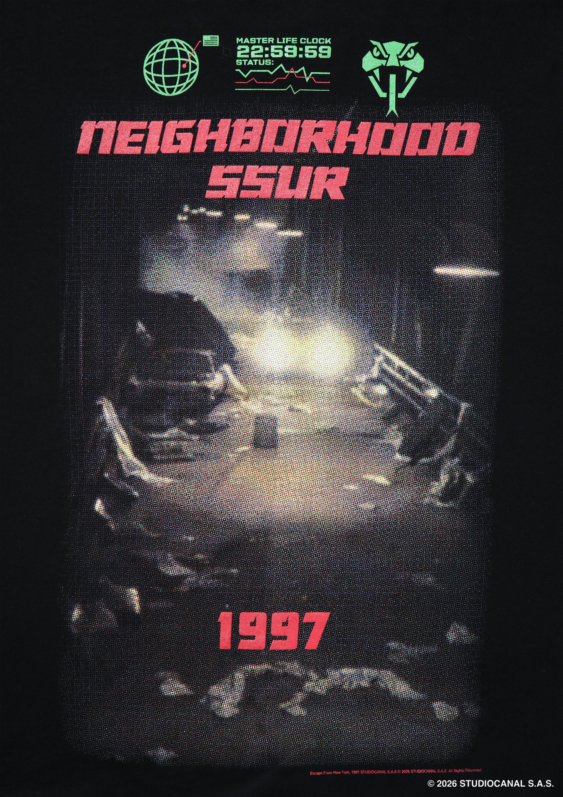 Short-sleeve T-shirt featuring artwork from the 1981 film "Escape from New York", reinterpreted and reconstructed by RUSLAN KARABLIN. Crafted from an original cotton jersey body. Finished with printed logos from both brands. <br>Created in collaboration with SSUR©, founded by RUSLAN KARABLIN.
