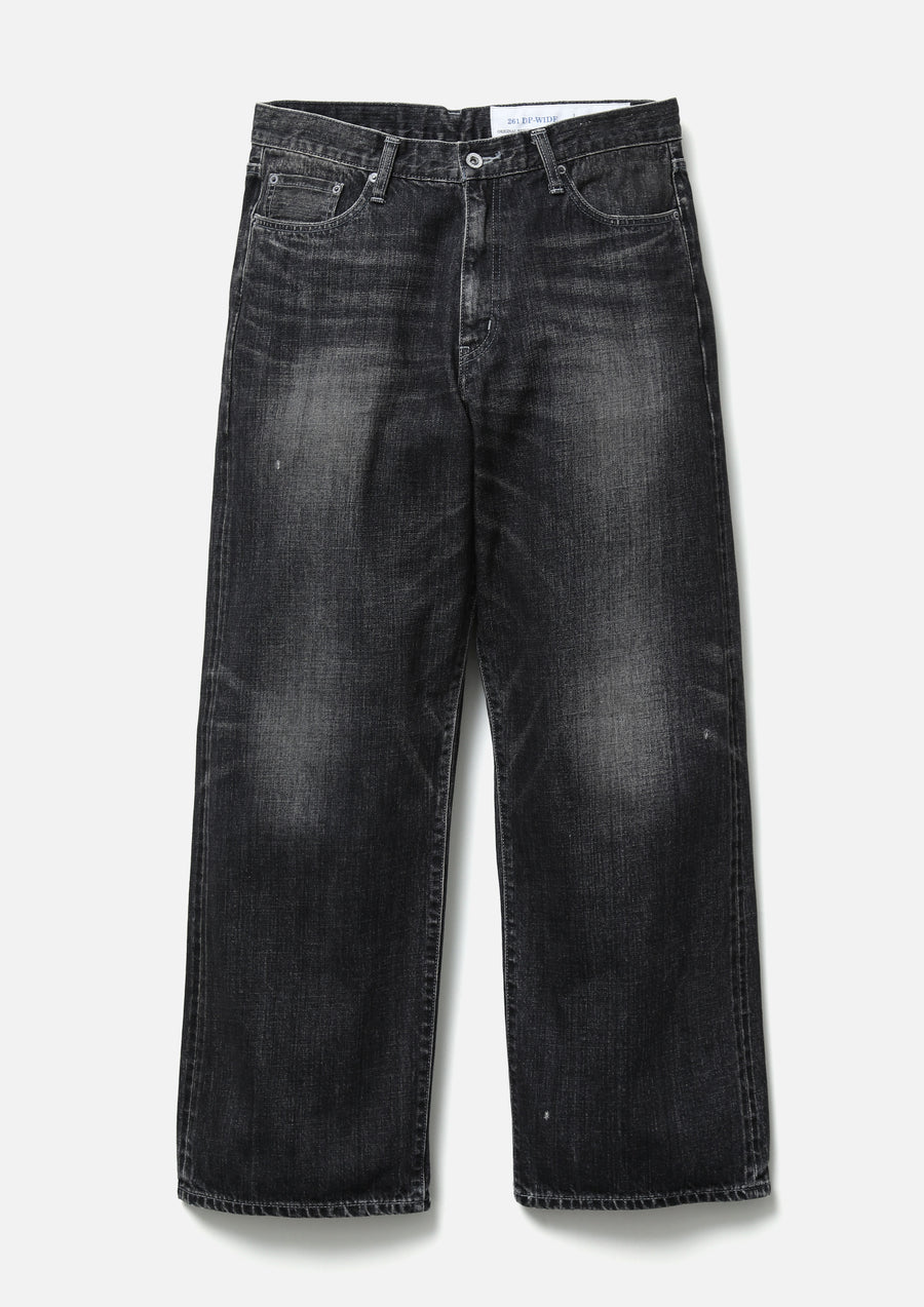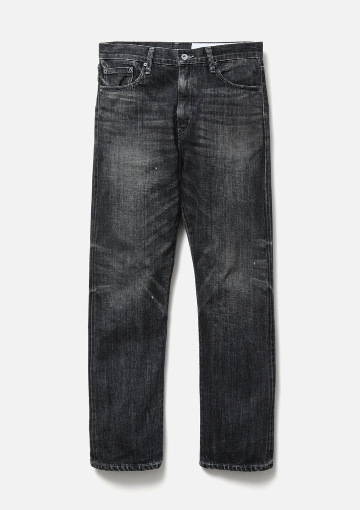 12 oz. original denim pants with a washed finish. All parts, from the selvedge denim fabric to the buttons and rivets, are all original. Details such as signature tape on the front zipper fly, "N" stitching on the hip pockets, and leather patches. Exclusive size label is attached to custom crafted item. New wide-slate silhouette with a fairly relaxed waist, hips, and hems.