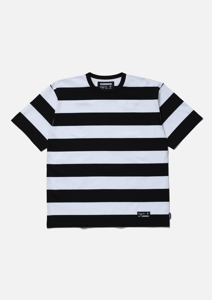 Striped tote bag based on an agnès b. model, made from cotton canvas that develops character with use. Front print features Agnès Troublé’s hand-written dual logos. Interior hanging pocket with brand tag.