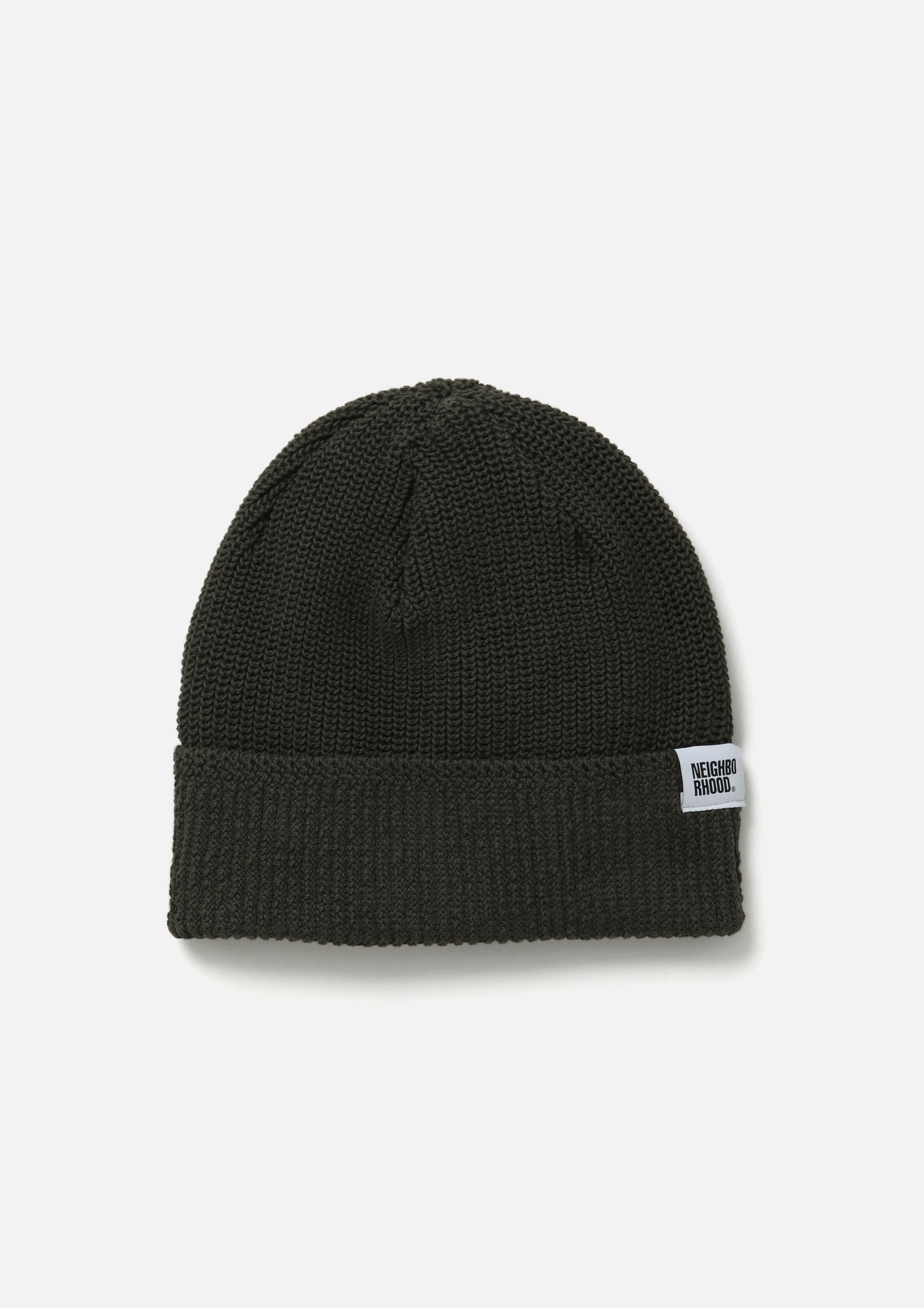 JP beanie knit from cotton yarn. A brand tag is placed on the left side.