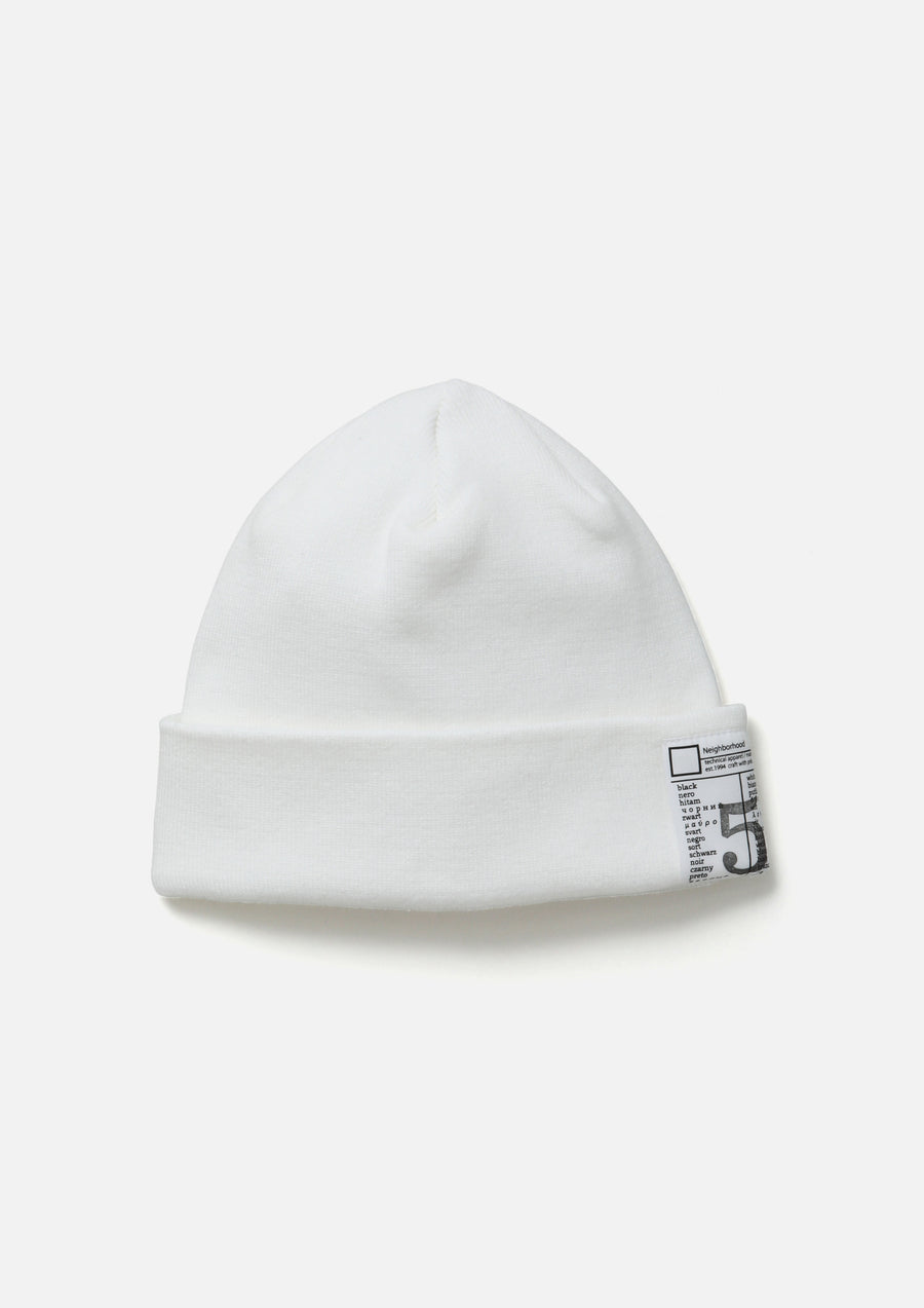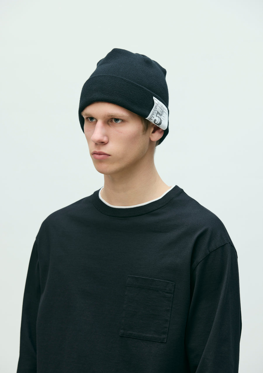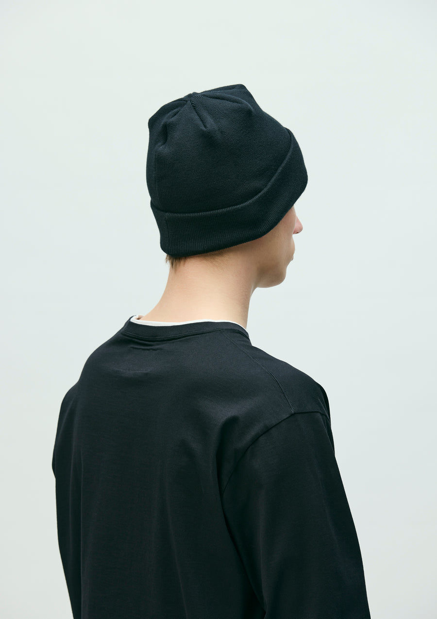 Beanie knit from cotton yarn. Features a dedicated BLACK & WHITE series brand tag, inspired by a uniform concept.