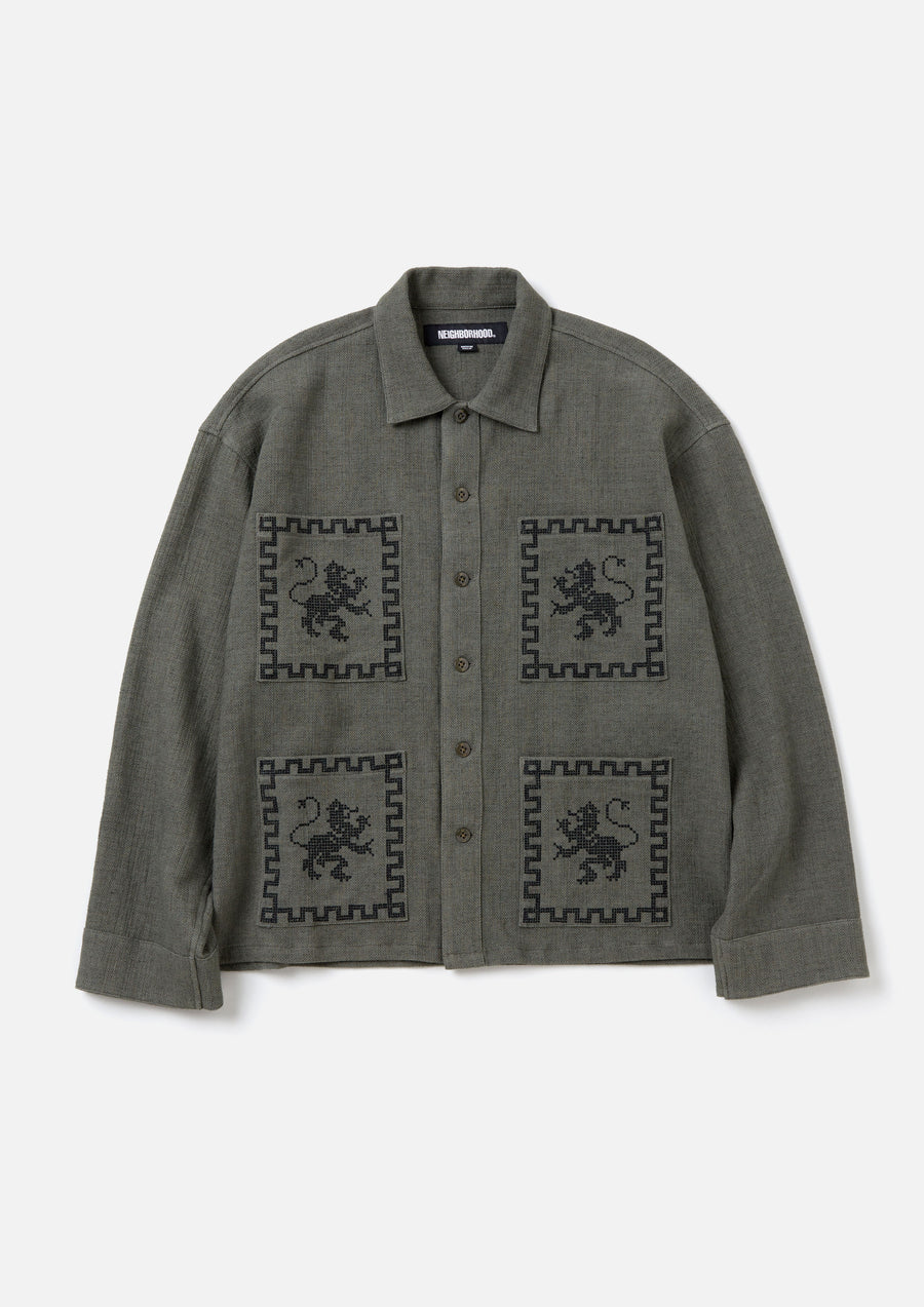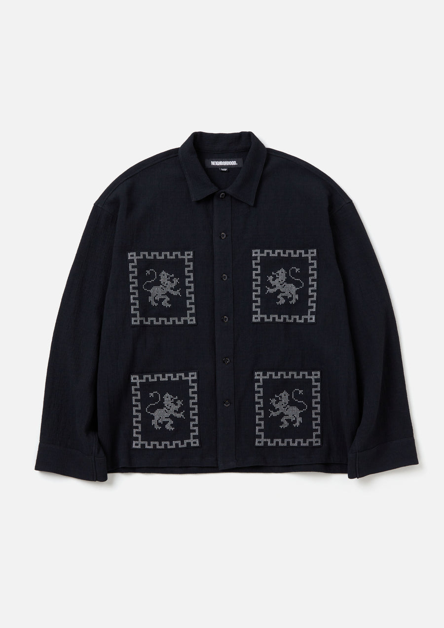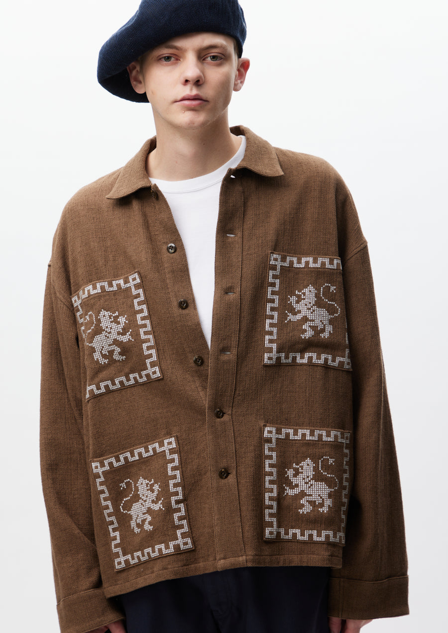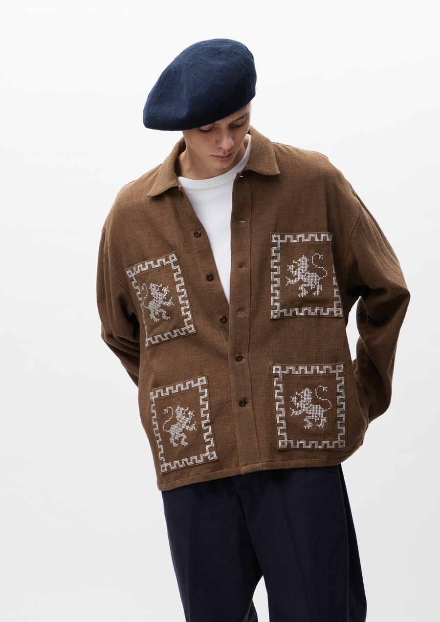 Dobby Cross Souvenir shirt with embroidered Guatemalan motif. Natural texture with an uneven and faded look that takes advantage of the natural texture of the material. Brand label attached to the side seams.