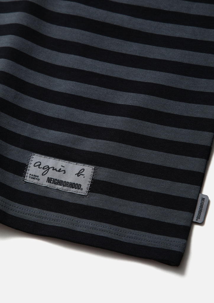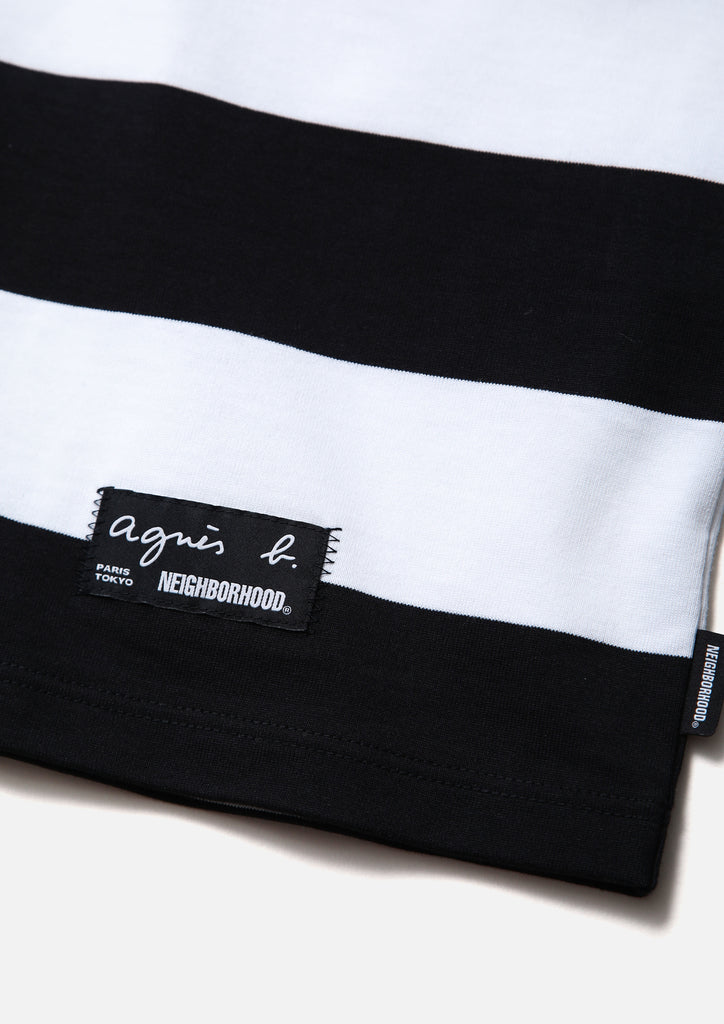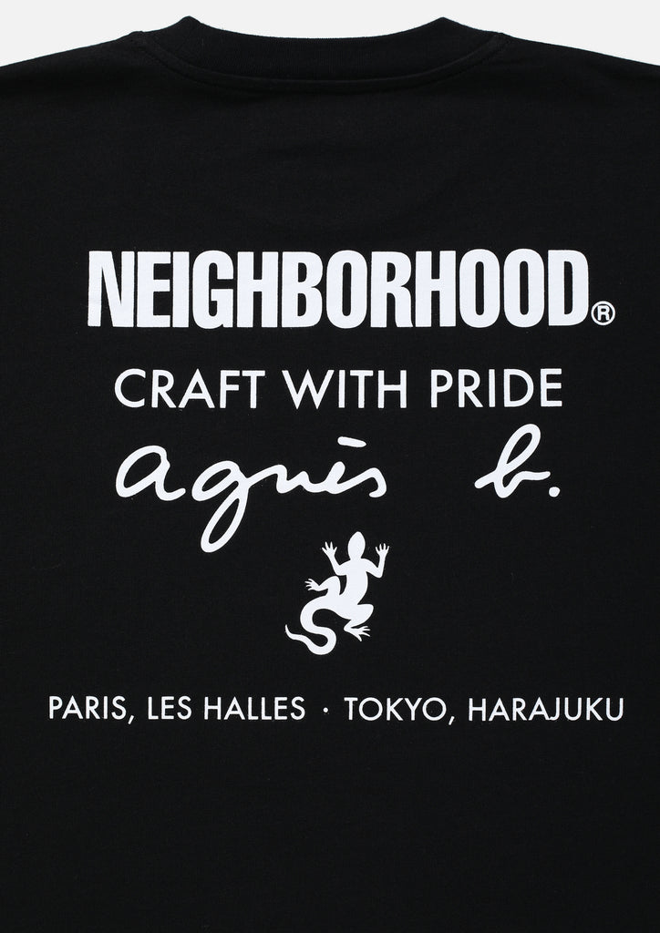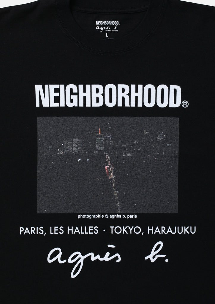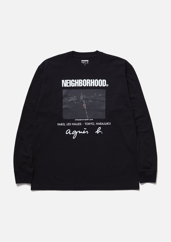 A long-sleeve tee using agnès b.’s original body. The “Harajuku × Les Halles” theme collages both brands’ roots and history with photographs and graphics.