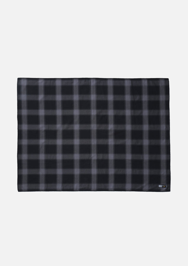 A checker down jacket made from high-density woven fabric, offering water repellency and anti-static properties while maintaining a soft texture. The checker pattern is constructed by filling each square with down and stitching them together. The front features two rows of adjustable snap buttons. The logo is printed on the body. A brand tag is attached to the side seam.