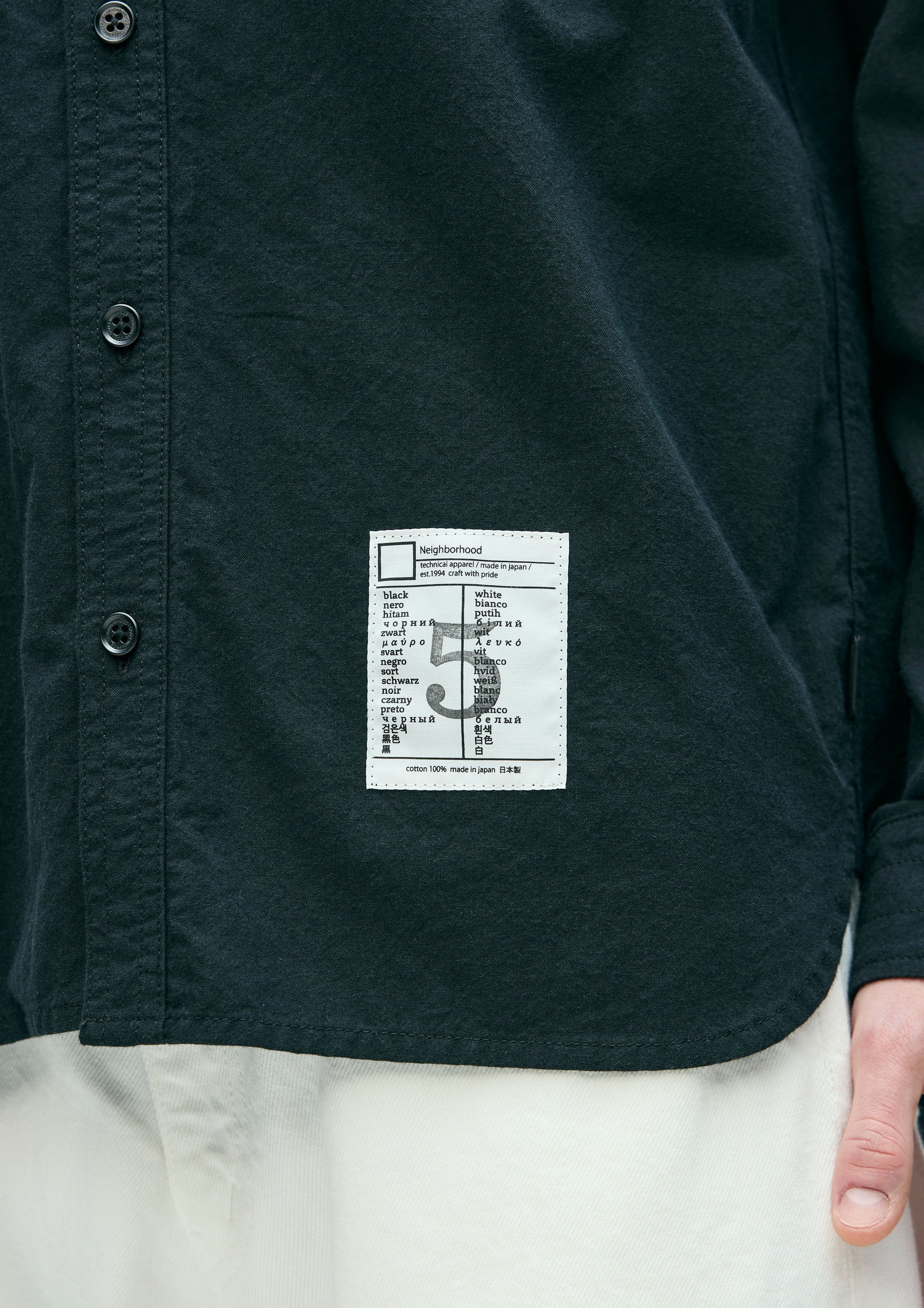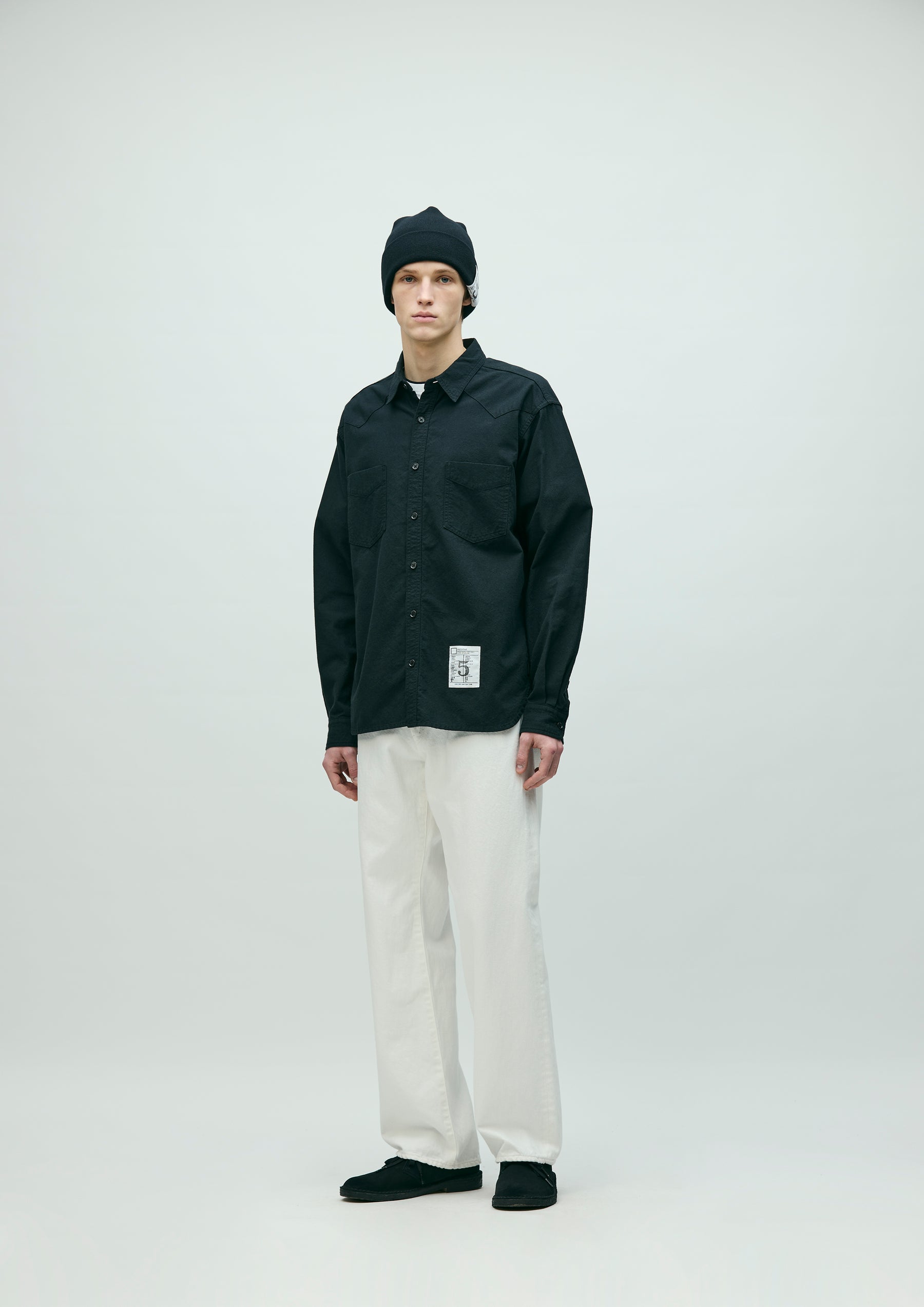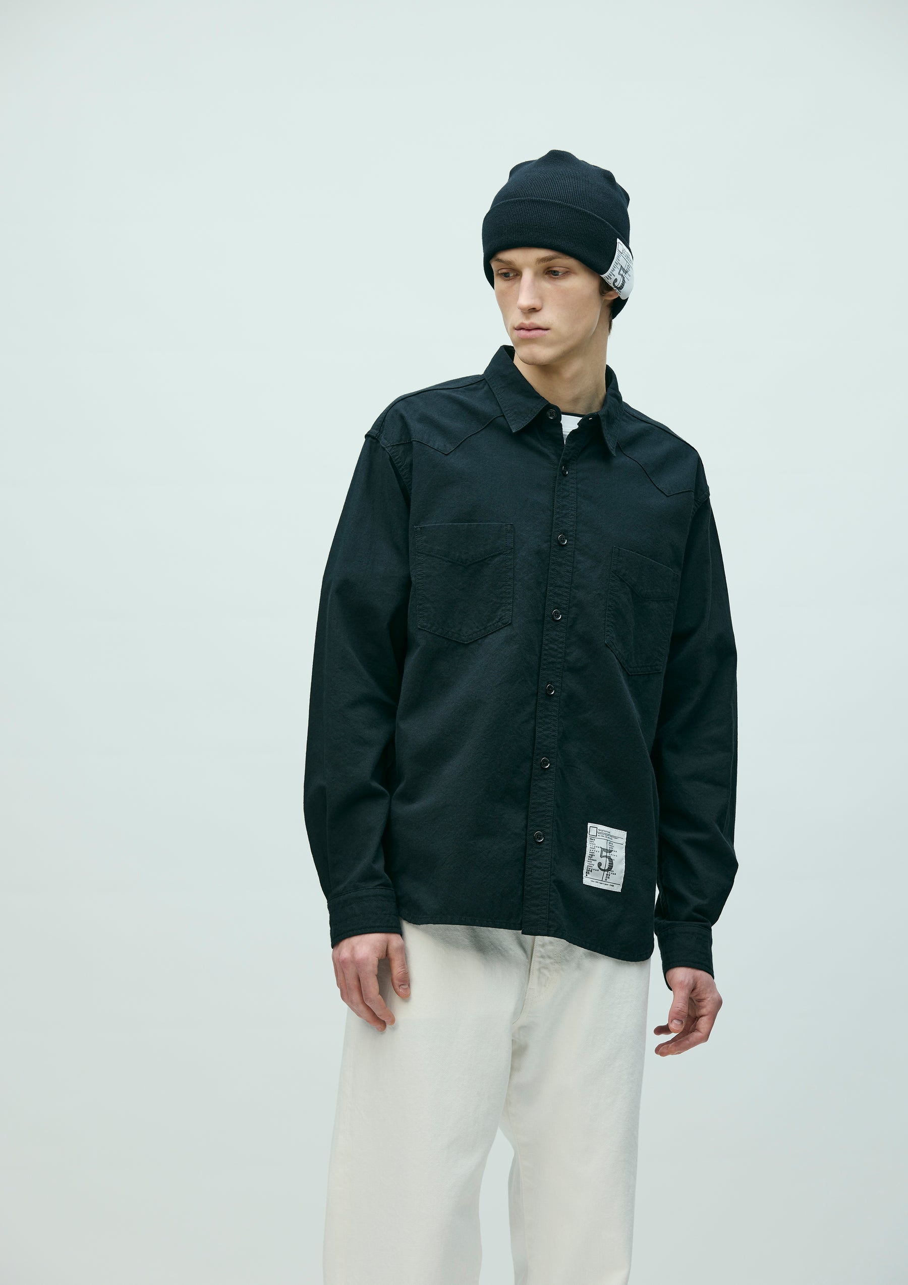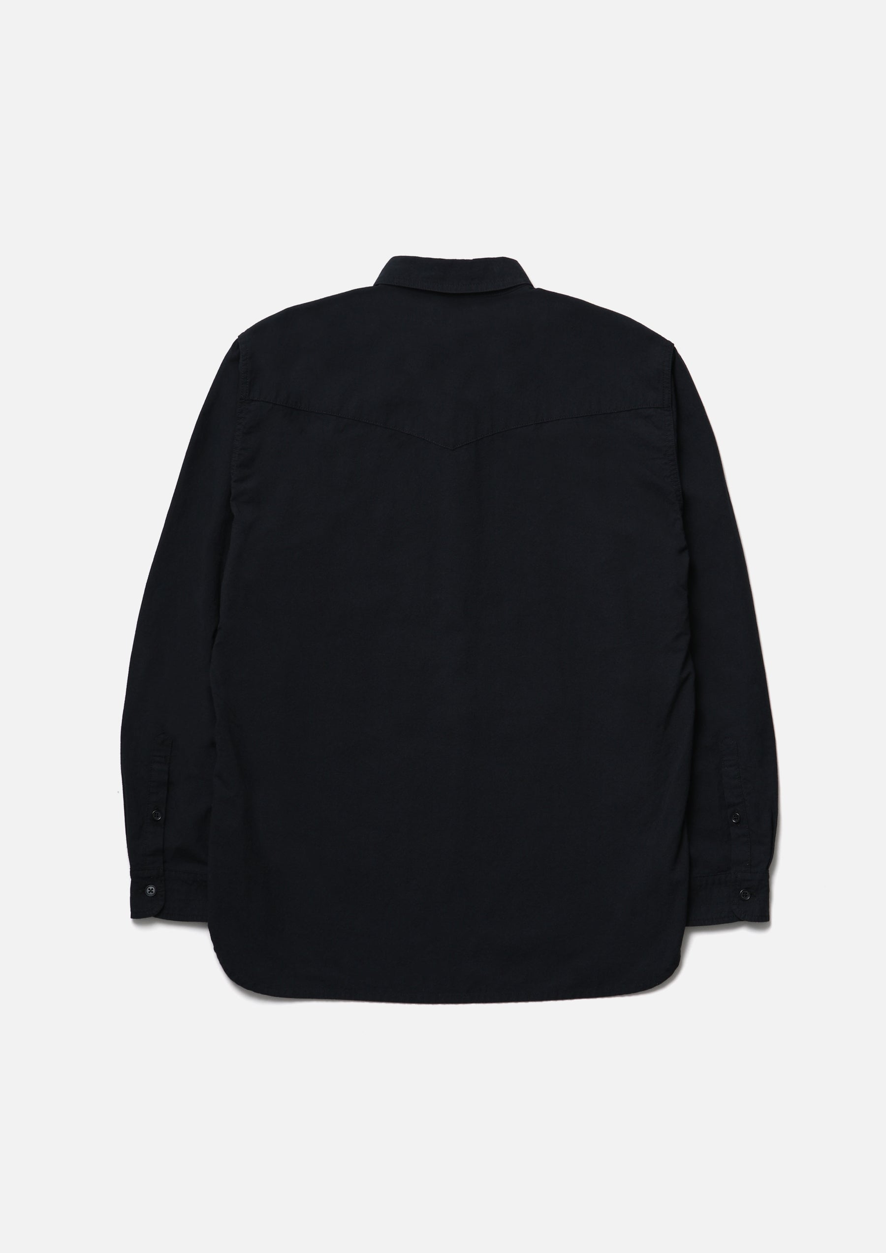 Western shirt made from lightweight cotton canvas with a washer finish that gives it a natural crinkled texture. Defined by its rounded yoke and classic detailing. Finished with original buttons. Comes with a brand tag exclusive to the BLACK & WHITE series, based on a uniform concept, along with a matching color size label and a woven side label. Completed with a one-wash finish.