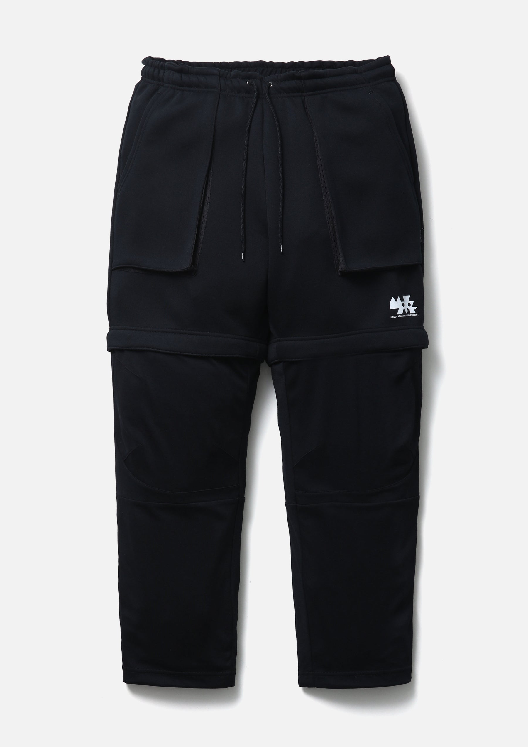 MAP Convertible Pants (2-Way: Long/Short) made from a combination of ECO BLUE® recycled polyester-blend double-knit fabric, offering softness and structure, and ICE PACK NYLON® blend reverse-knit fabric, providing excellent moisture control and a cooling effect. Designed so the lower pant legs can be detached via zippers without removing shoes. Features a printed logo on the left hem of the shorts and a woven side label at the side seam. The hem of the long pant portion is equipped with an adjustable elastic drawcord.