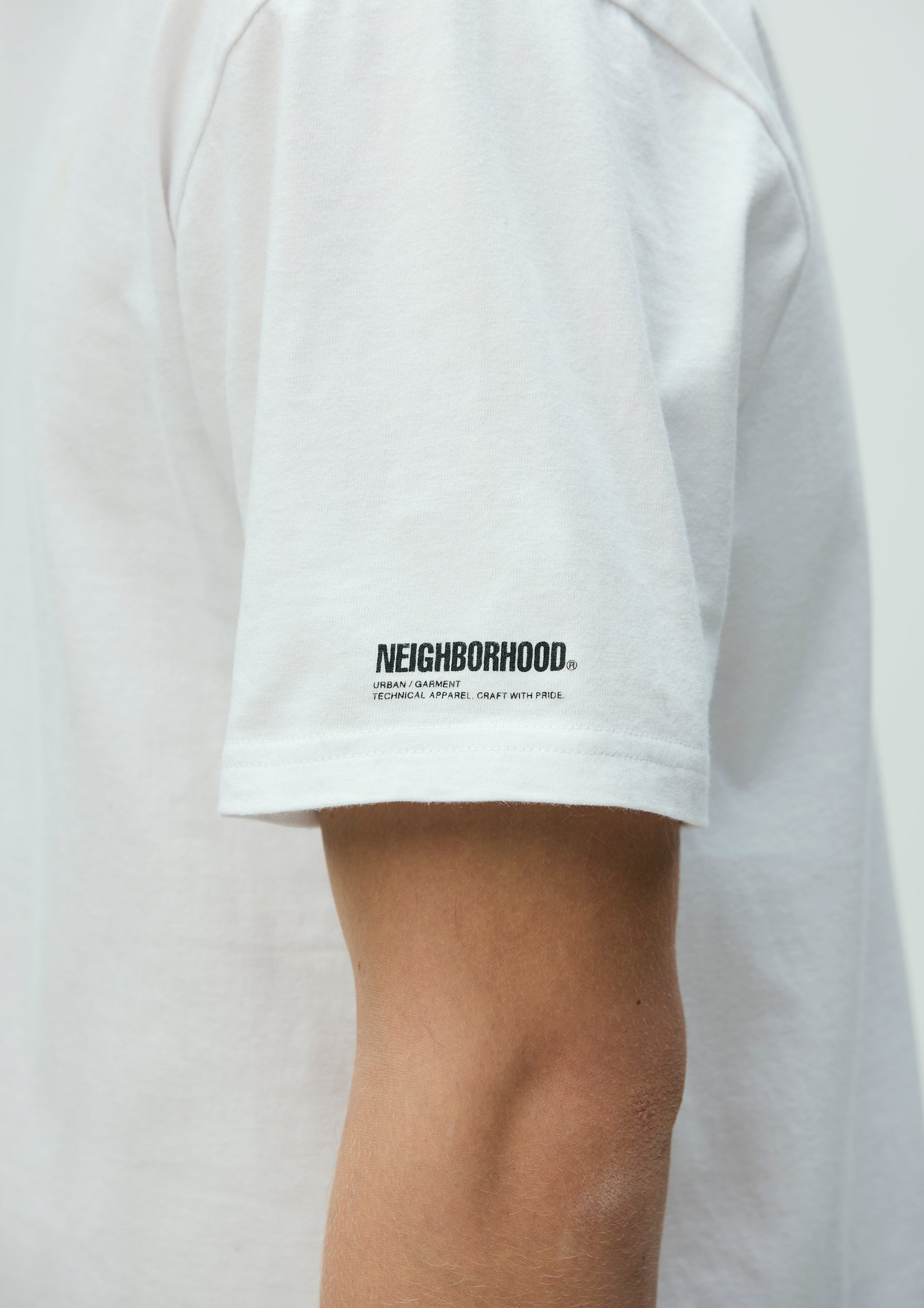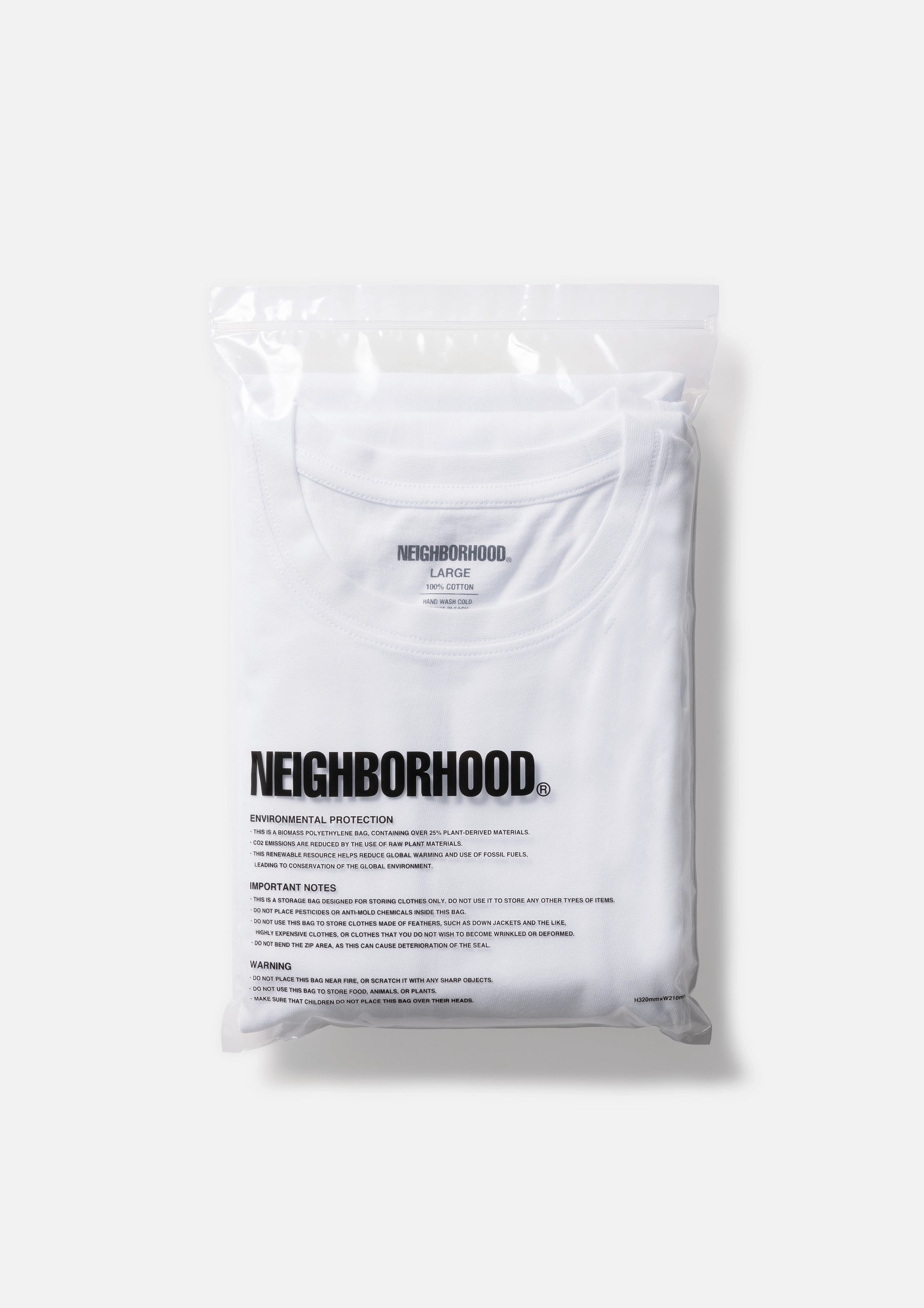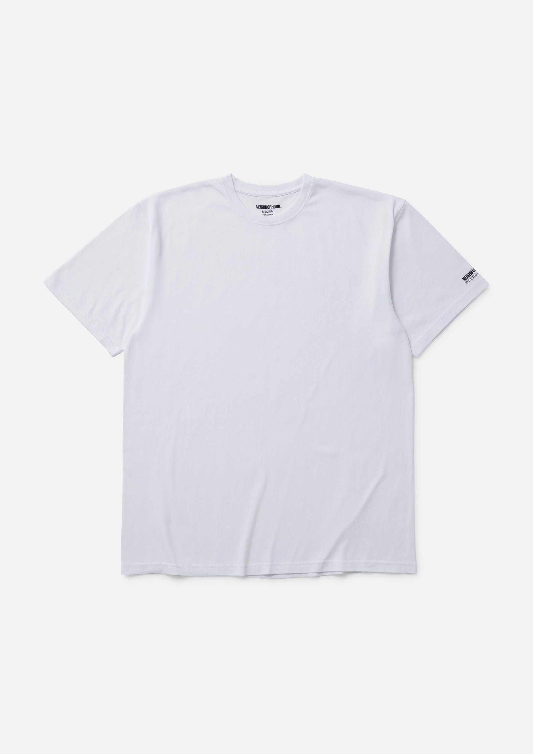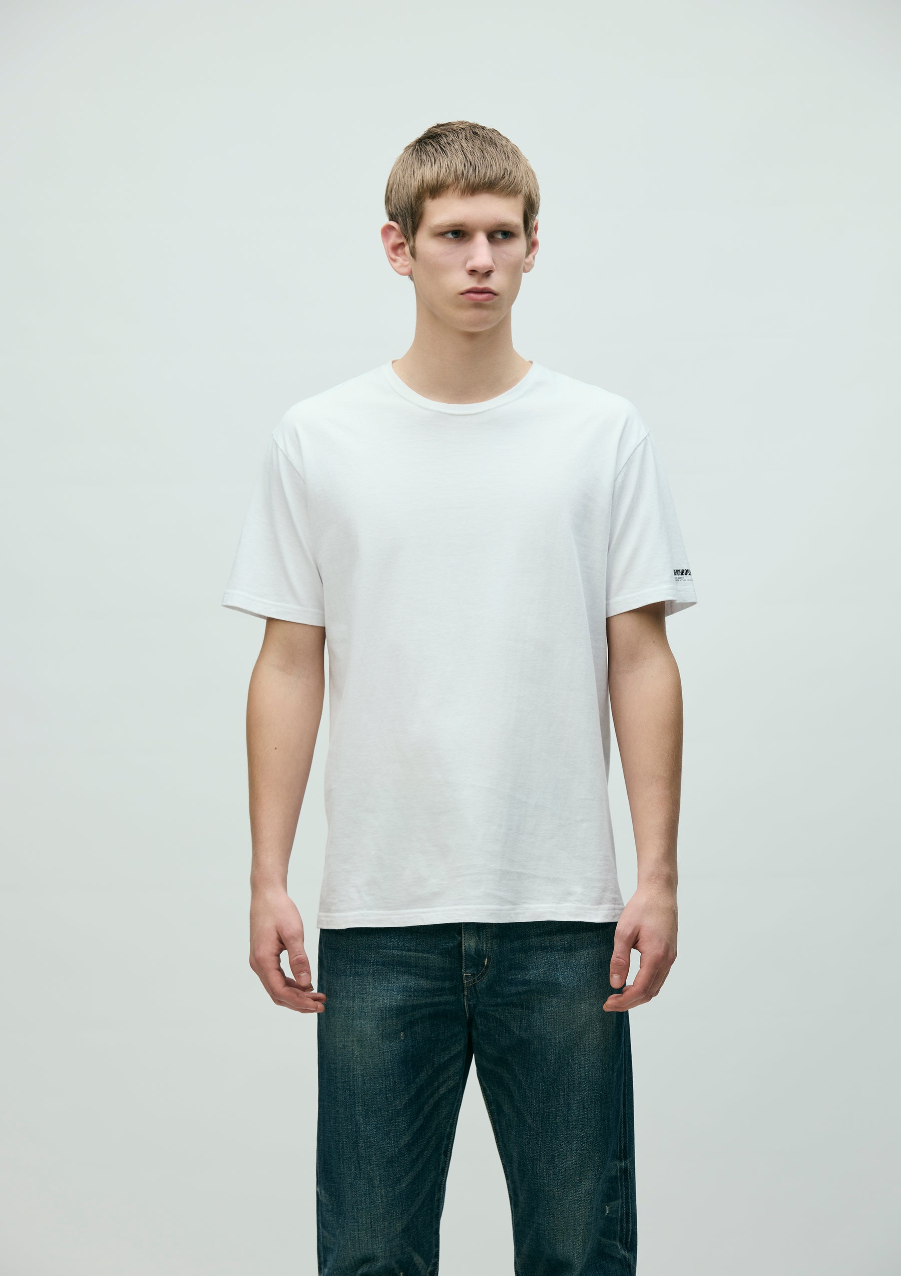 Two-pack crewneck T-shirts in seamless tubular body construction. Logo print at sleeve.