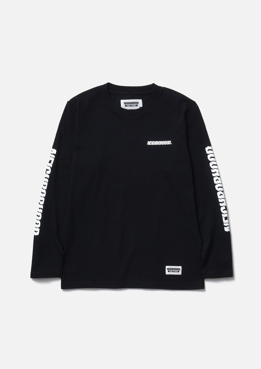 A long-sleeve T-shirt made of a 5.6oz heavyweight body. Printed logo on the left chest and sleeve. A name tag is placed on the left hem.
