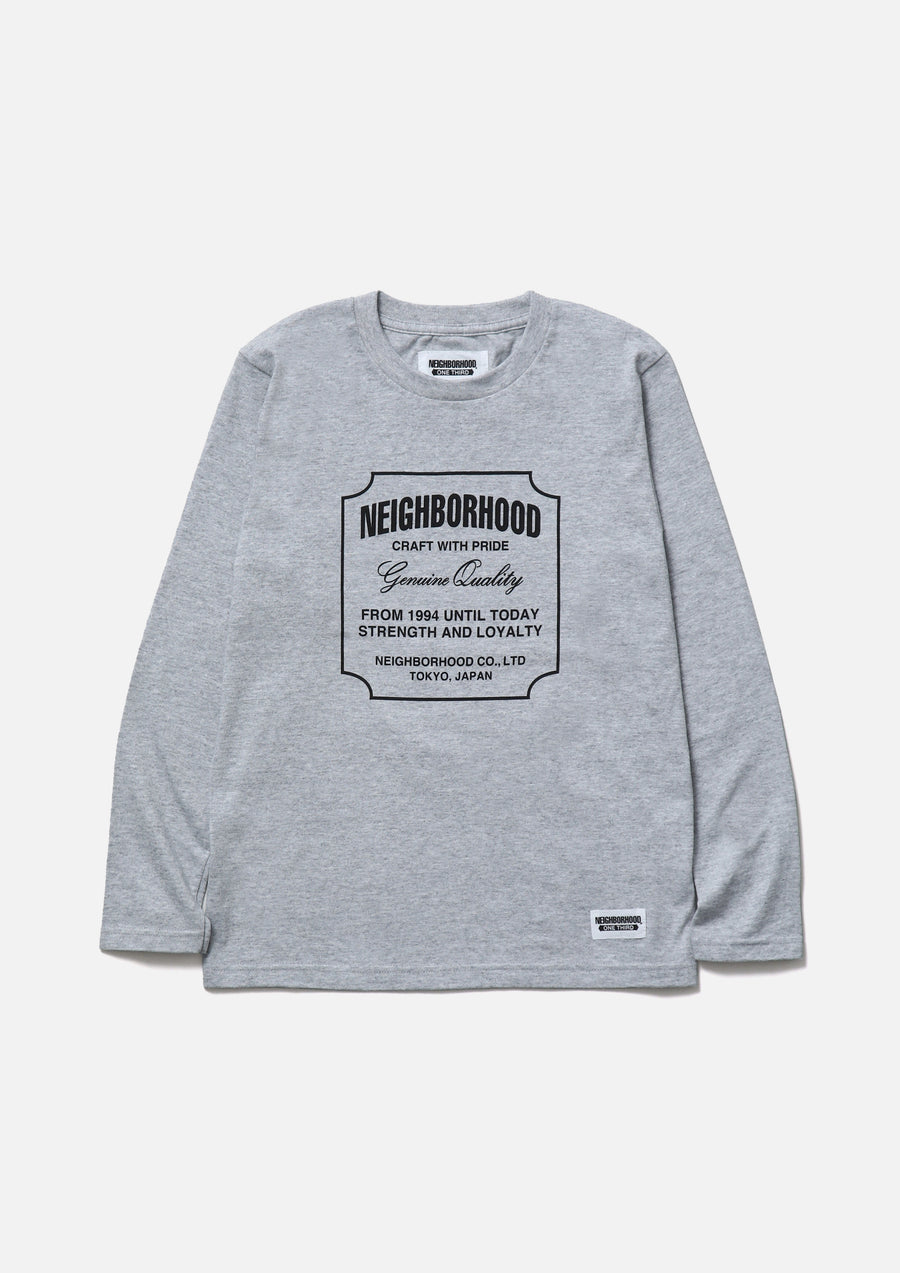 A long-sleeve T-shirt made of a 5.6oz heavyweight body. Graphic print on the front. A name tag is placed on the left hem.