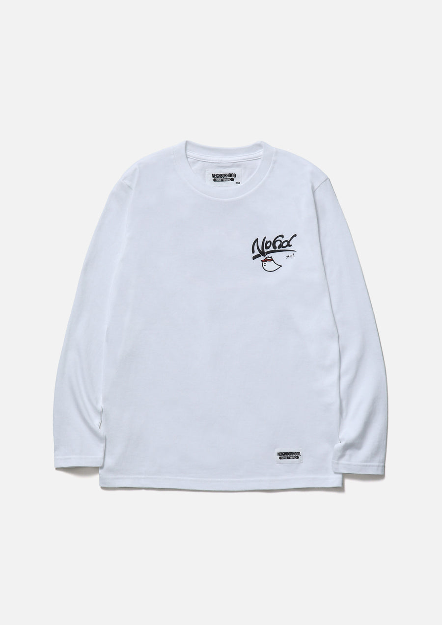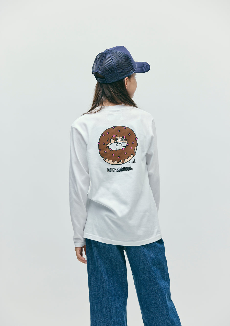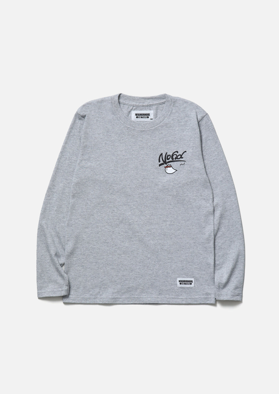 A long-sleeve T-shirt made of a 5.6oz heavyweight body. Features graphic prints by ghost. on the left chest and back. A name tag is placed on the left hem.