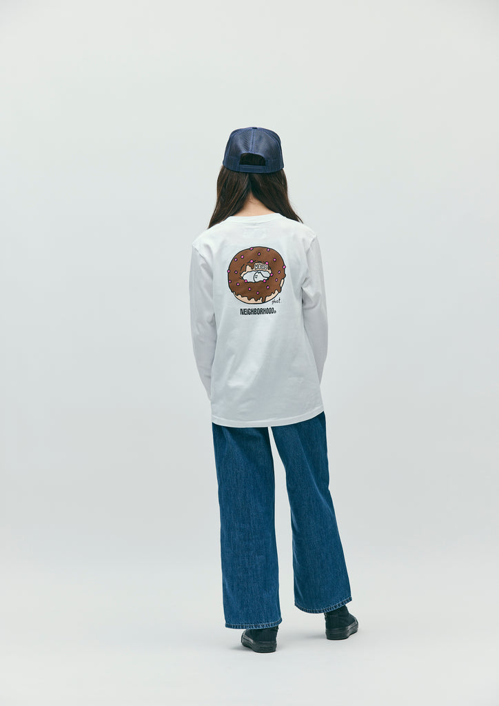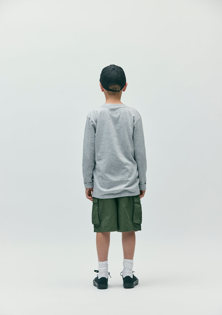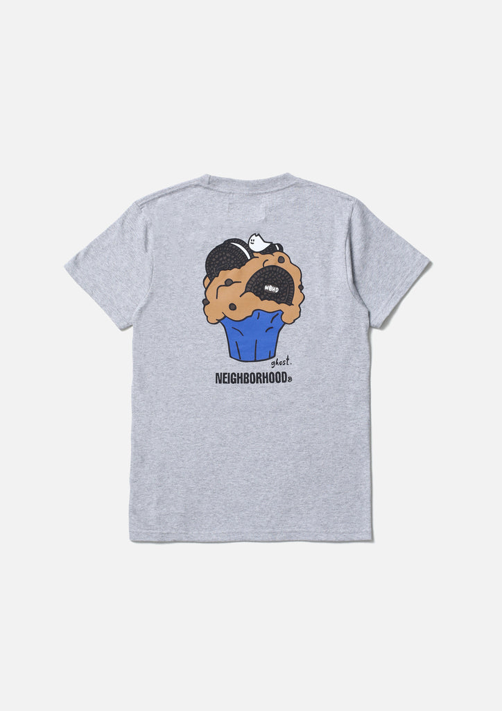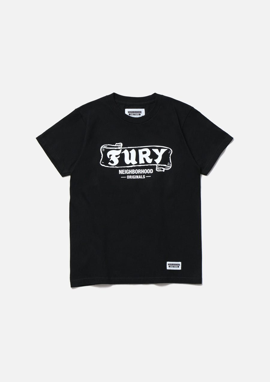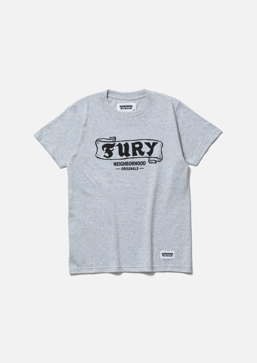 A short-sleeve T-shirt made of a 5.6oz heavyweight body. Graphic print on the front. A name tag is placed on the left hem.