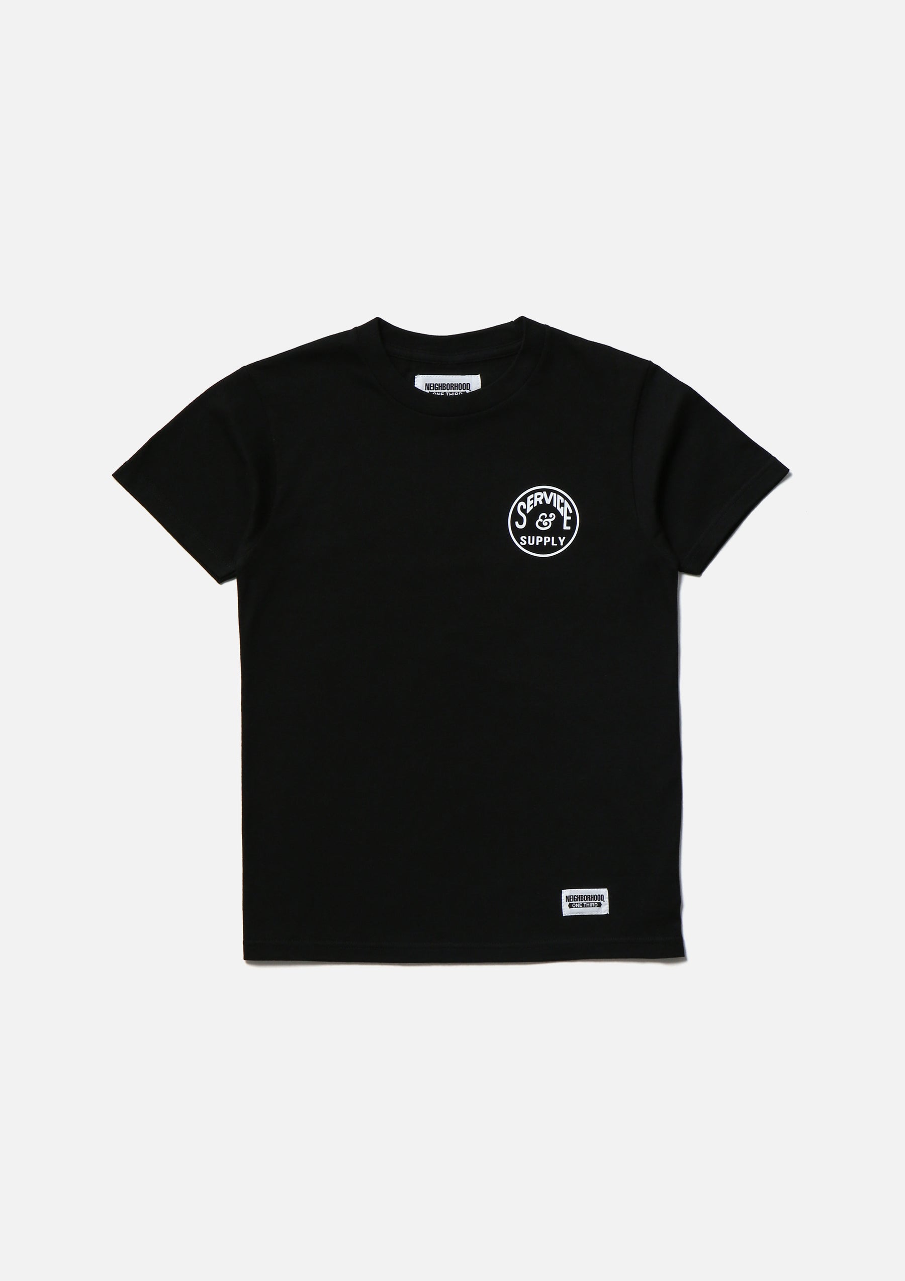 Short sleeve T-shirt made of 5.6oz heavyweight body. Logo printed on the left chest and back. Brand tag at the left hem.