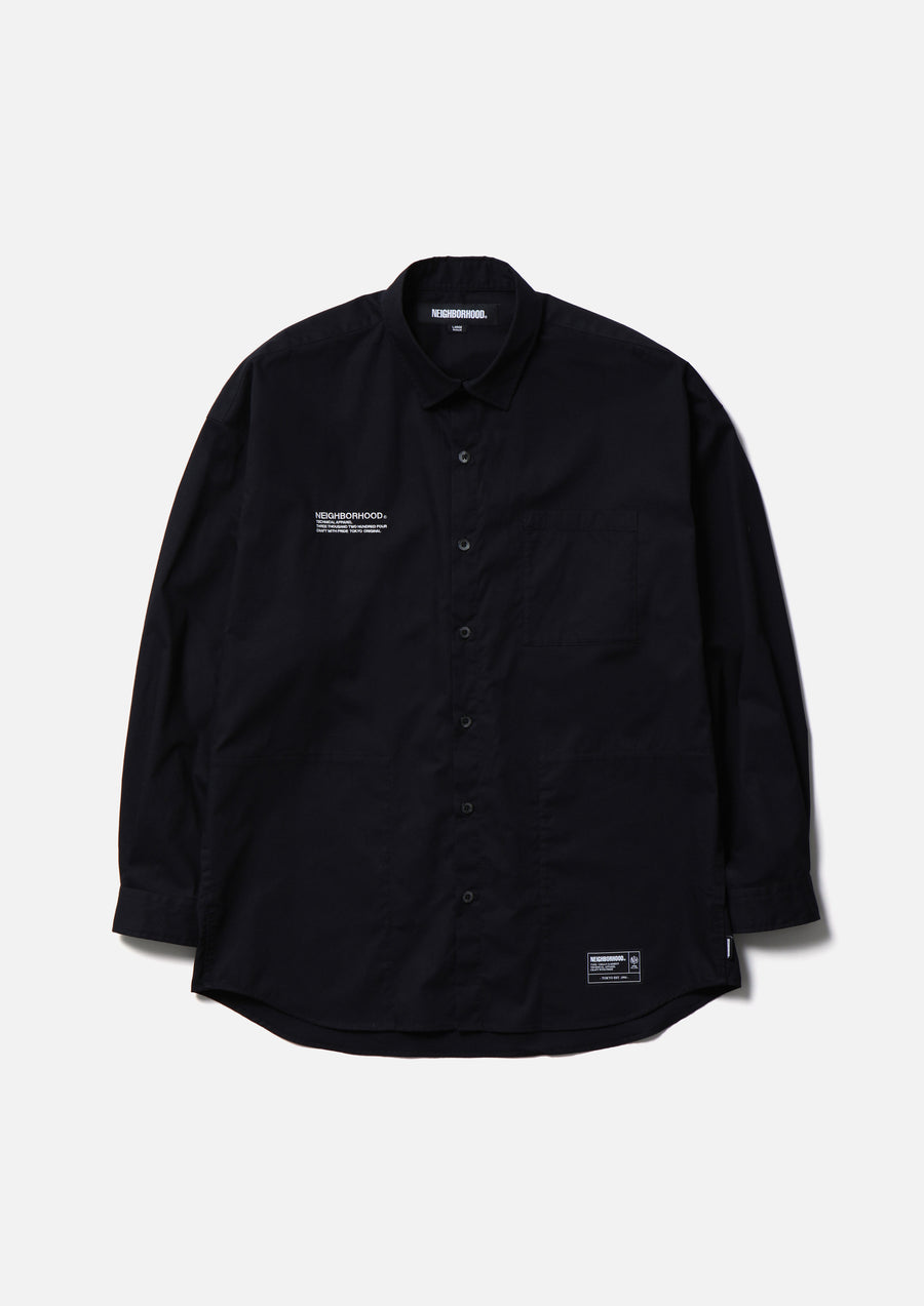 An overshirt made from lightweight broadcloth fabric with a smooth touch and moderate firmness. Equipped with hand pockets utilizing side details. Embroidered logo on the right chest. Features original shell-like buttons, a brand tag on the left hem and side seam. Relaxed silhouette. One-wash finish.