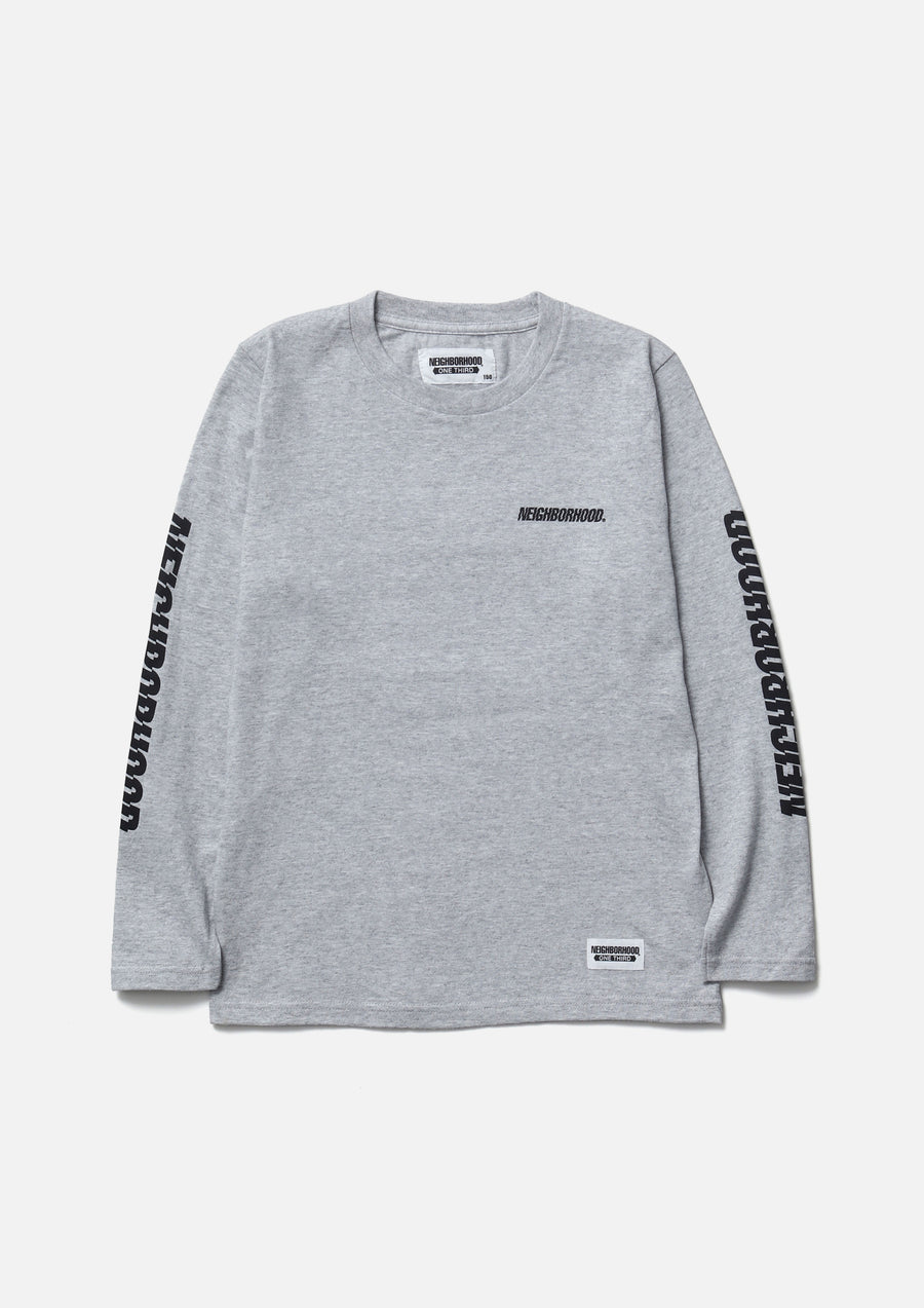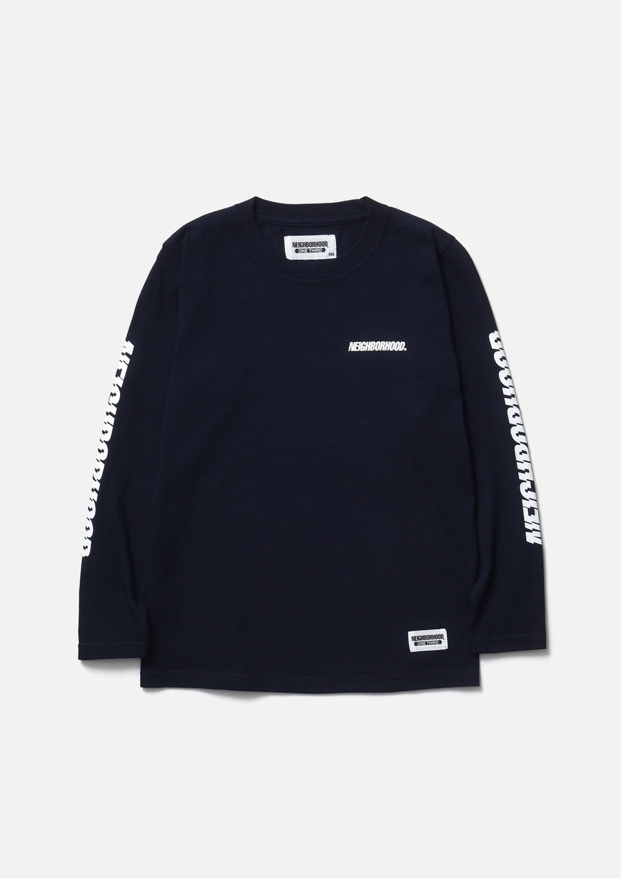 A long-sleeve T-shirt made of a 5.6oz heavyweight body. Printed logo on the left chest and sleeve. A name tag is placed on the left hem.