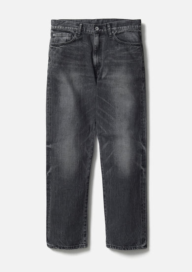 BLACK DENIM WASHED SLIM STRAIGHT PANTS