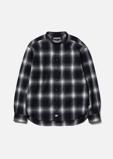 HOMBRE CHECK BAND COLLAR SHIRT LS