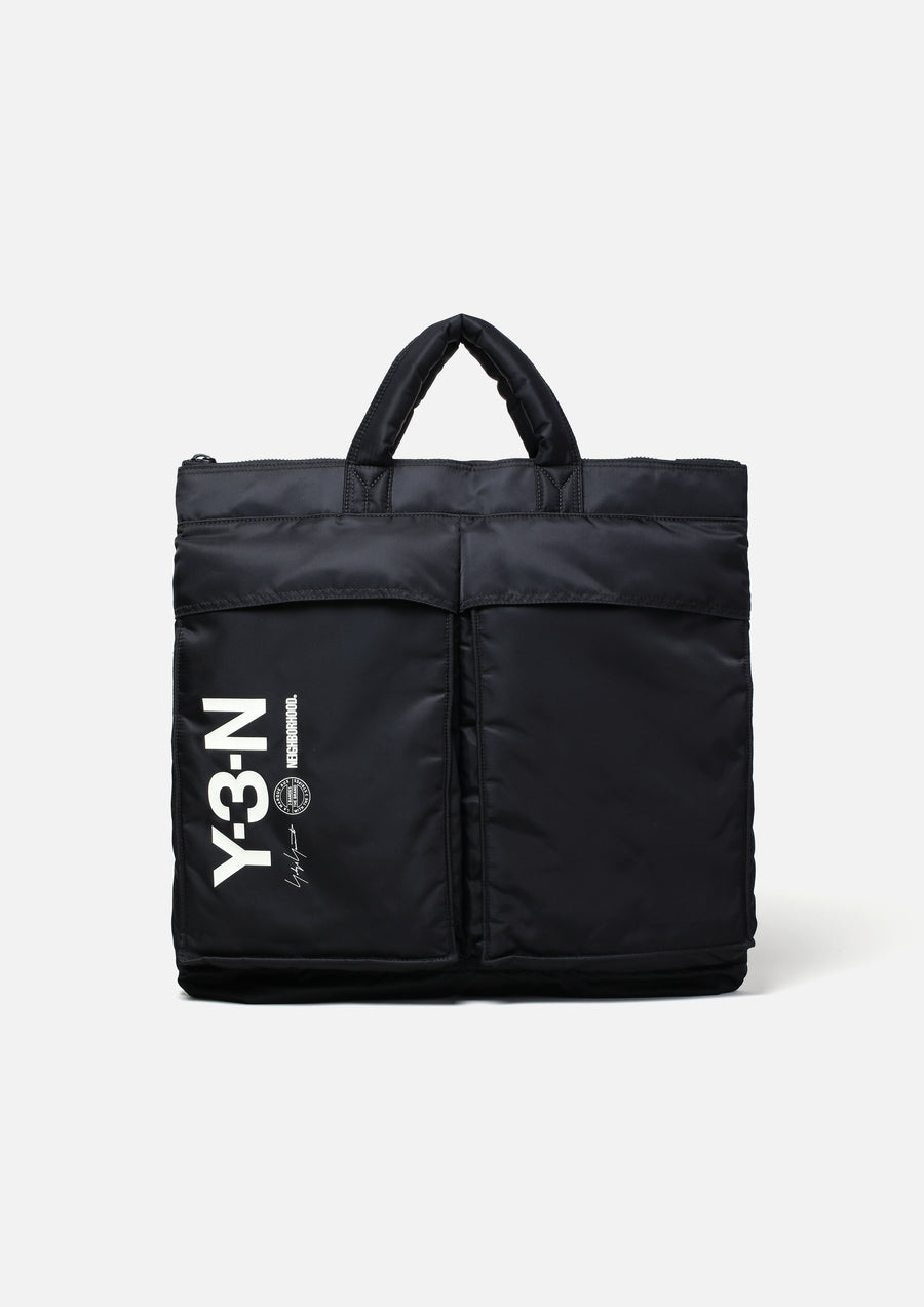 Padded 2-way bag that can be used as both a tote and a shoulder bag, crafted from nylon material. Equipped with multiple functional pockets, including gusseted pockets, concealed zip pockets, and inner compartments, as well as an interior D-ring for attaching keys or charms. Features a printed logo on the front and comes with a detachable shoulder strap. A collaboration with “Y-3,” the sports fashion brand that fuses adidas’s advanced technical expertise and functionality with Yohji Yamamoto’s design sensibility.