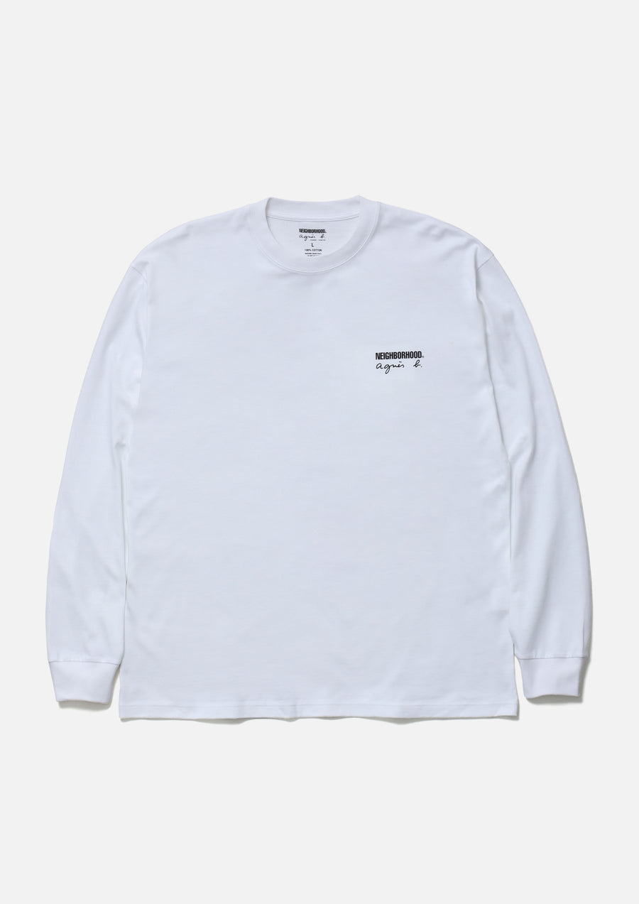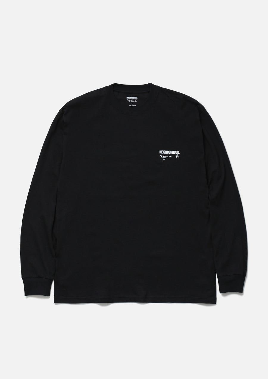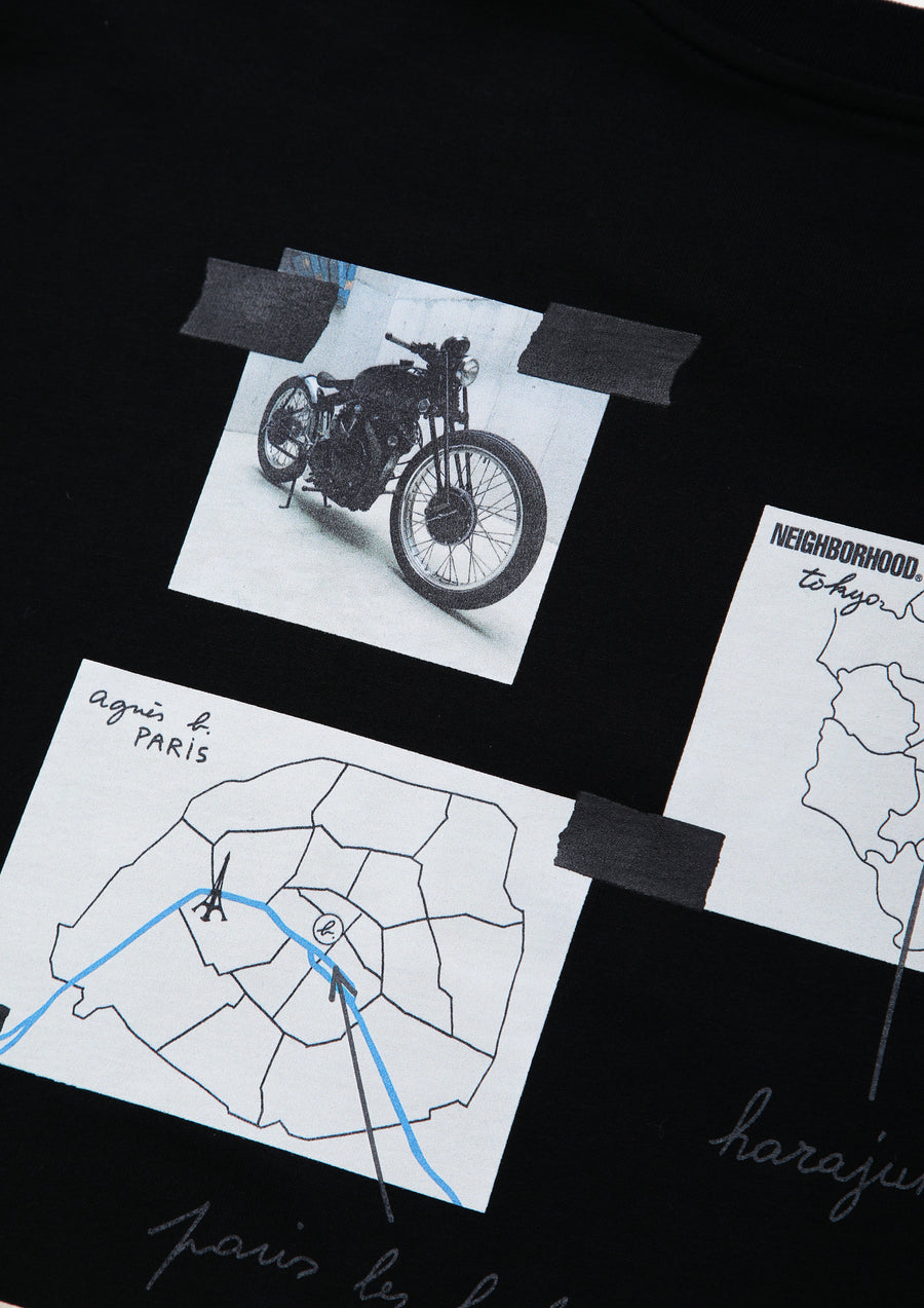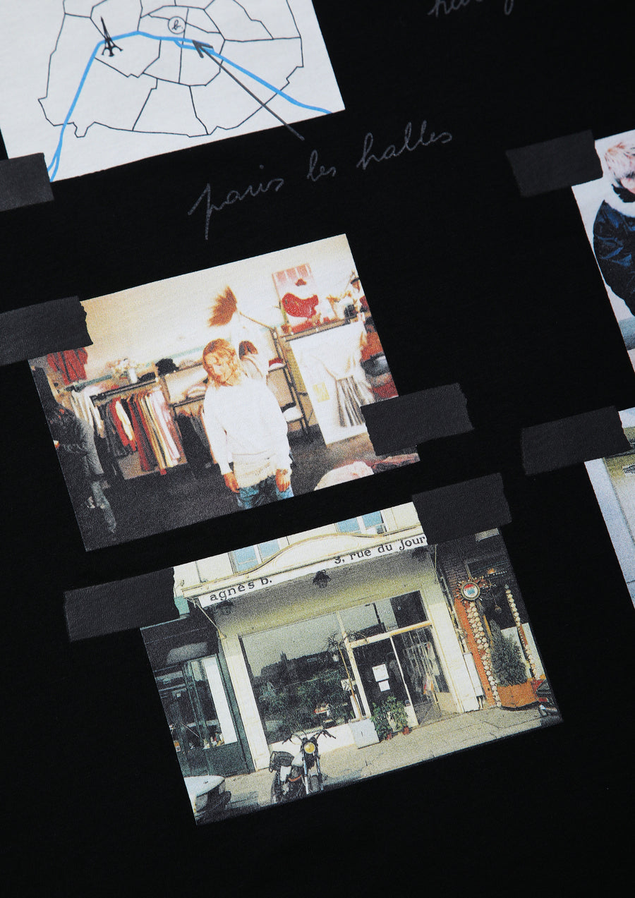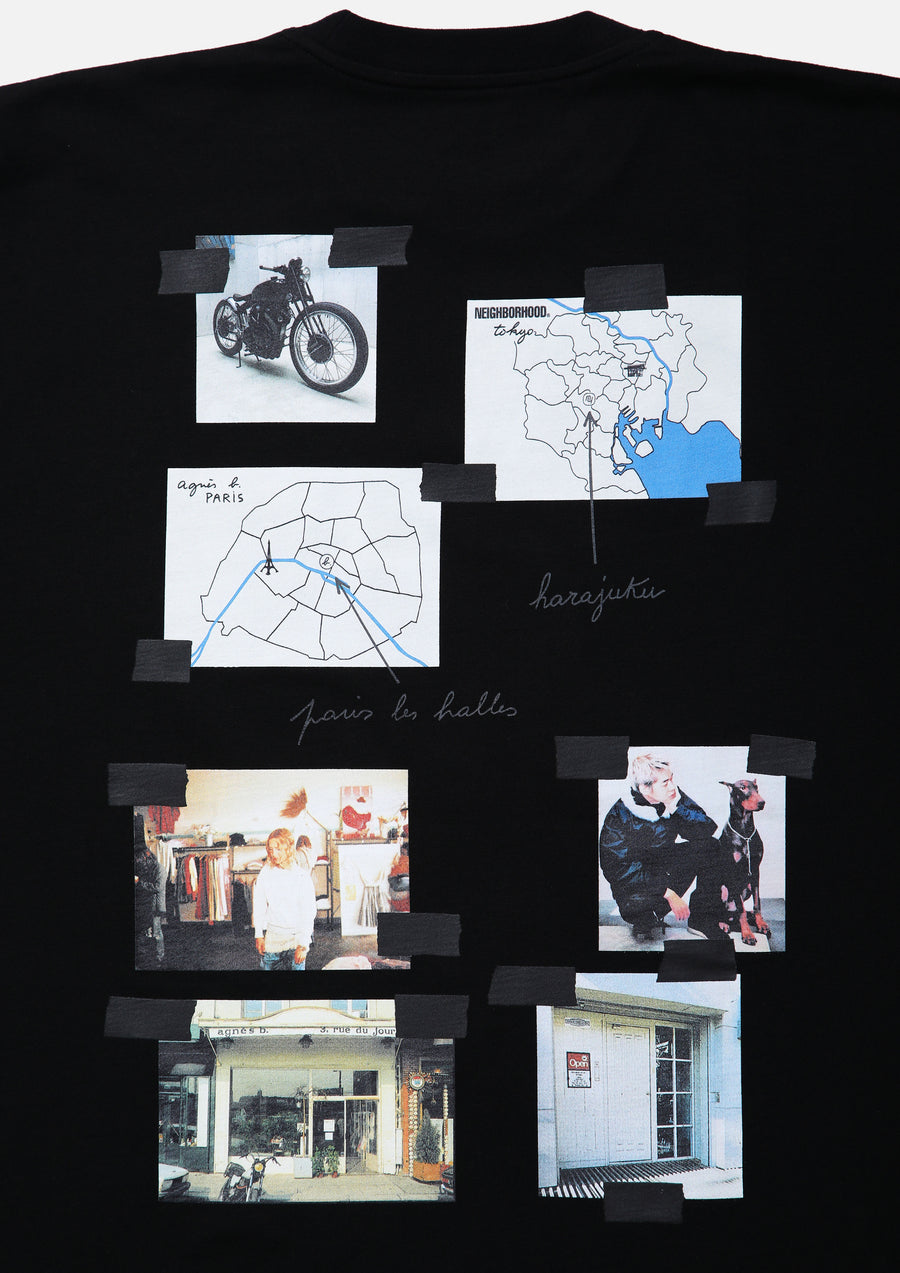 A long-sleeve tee using agnès b.’s original body. The “Harajuku × Les Halles” theme collages both brands’ roots and history with photographs and graphics.