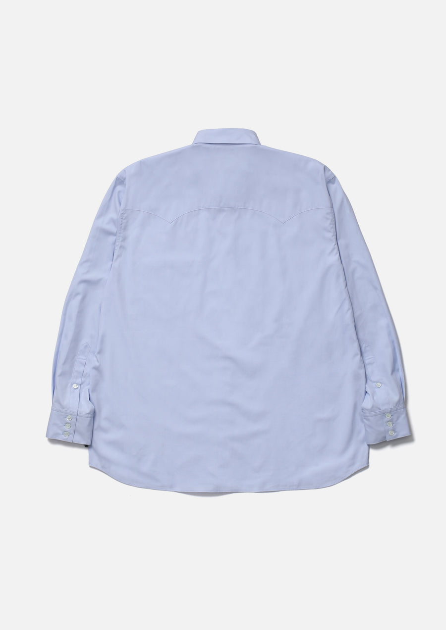 Western shirt made from 100% cotton with careful stitchwork. Features cuffed sleeves, a back yoke, and original buttons. Patch pocket at the left chest. Brand tag at the left hem and side seam. Collaboration with agnès b.