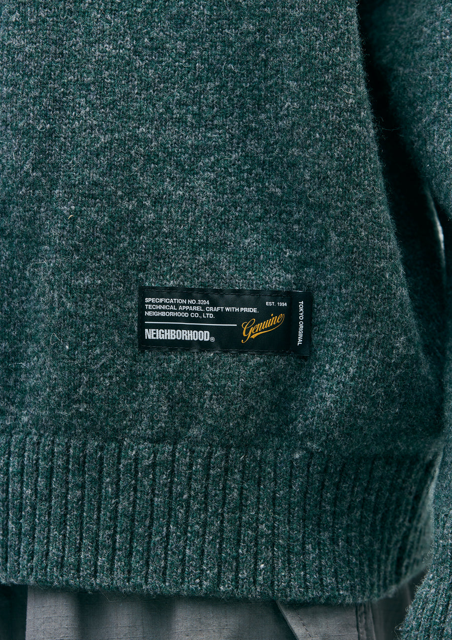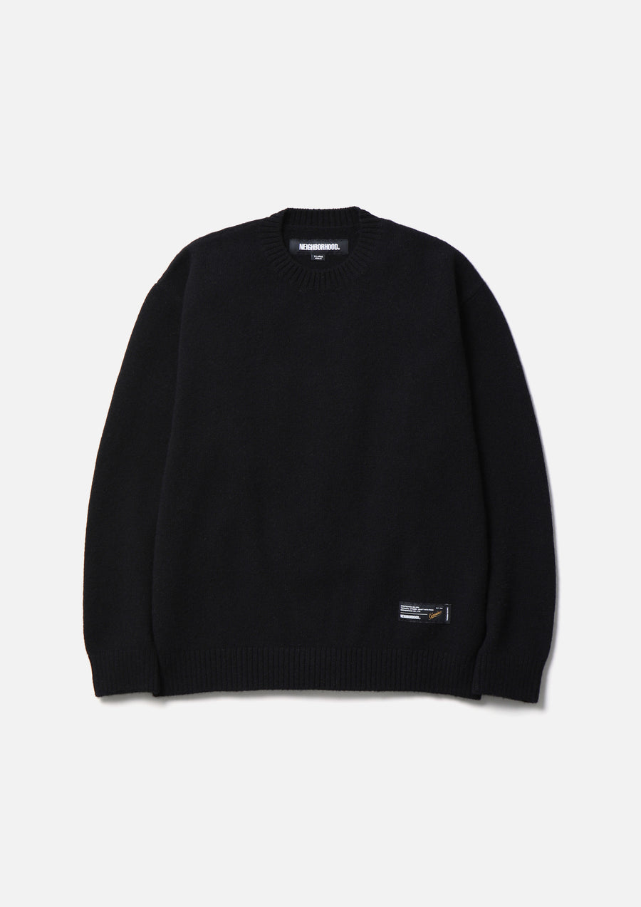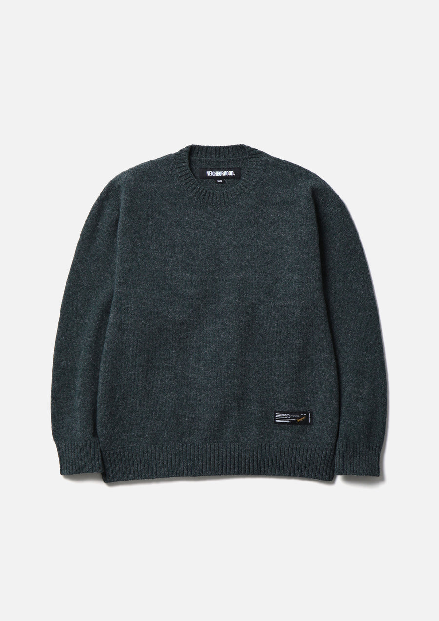 A crewneck knit made from merino wool, finished with 5-gauge jersey knitting. Brand tag on the left hem.