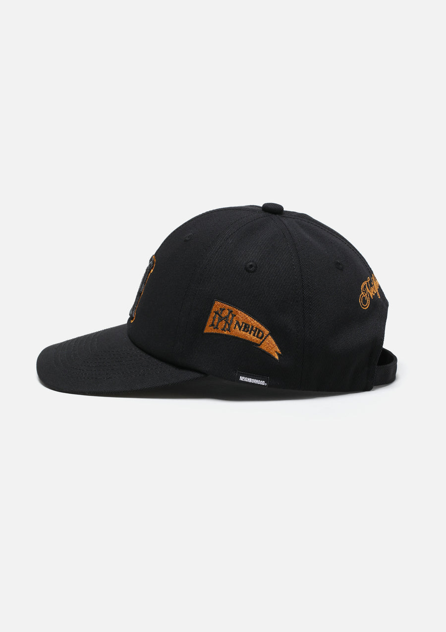 Baseball cap crafted from durable TC twill. Features embroidered logos and motifs on the front, side, and back.
