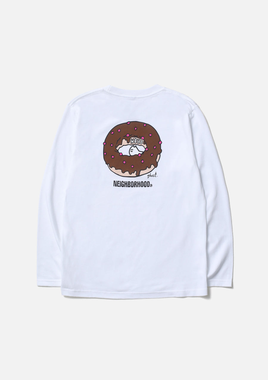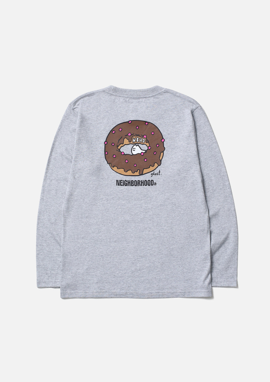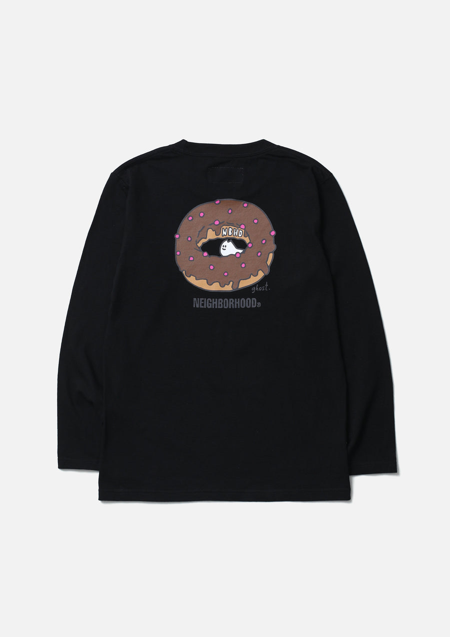 A long-sleeve T-shirt made of a 5.6oz heavyweight body. Features graphic prints by ghost. on the left chest and back. A name tag is placed on the left hem.