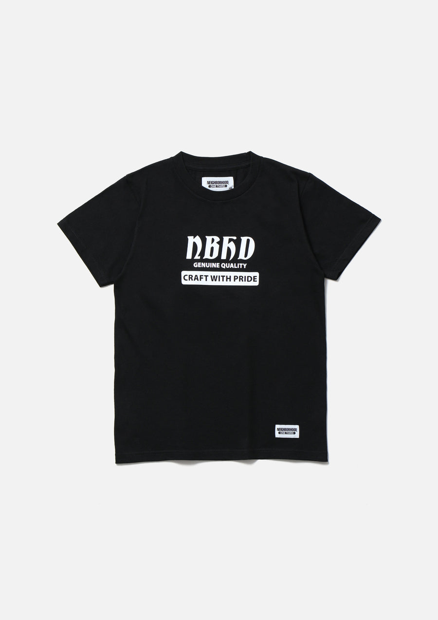A short-sleeve T-shirt made of a 5.6oz heavyweight body. Graphic print on the front. A name tag is placed on the left hem.