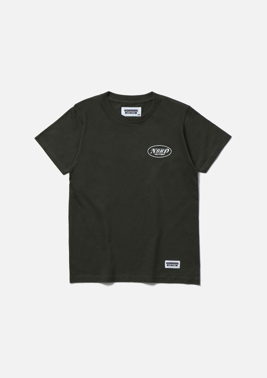 A short-sleeve T-shirt made of a 5.6oz heavyweight body. Graphic prints on the left chest and back. A name tag is placed on the left hem.