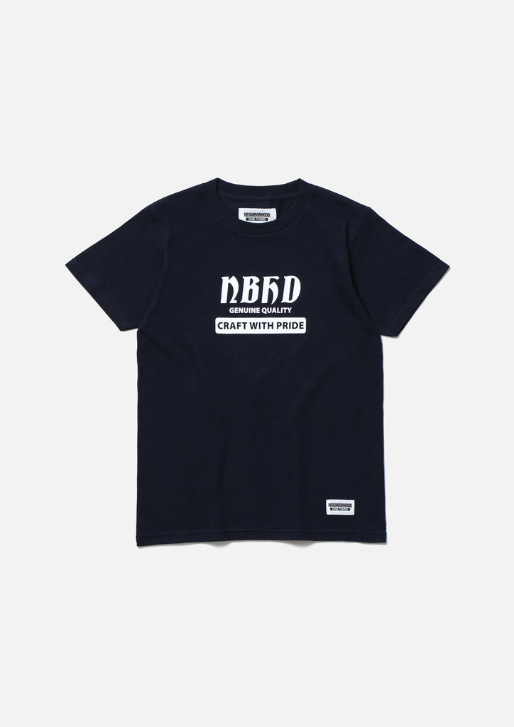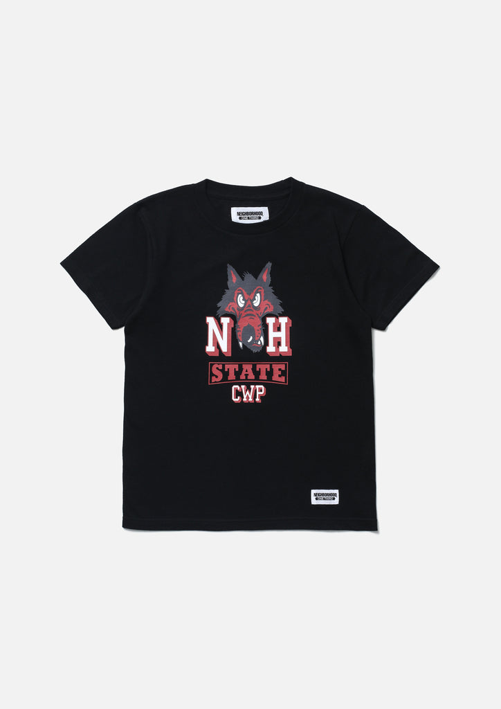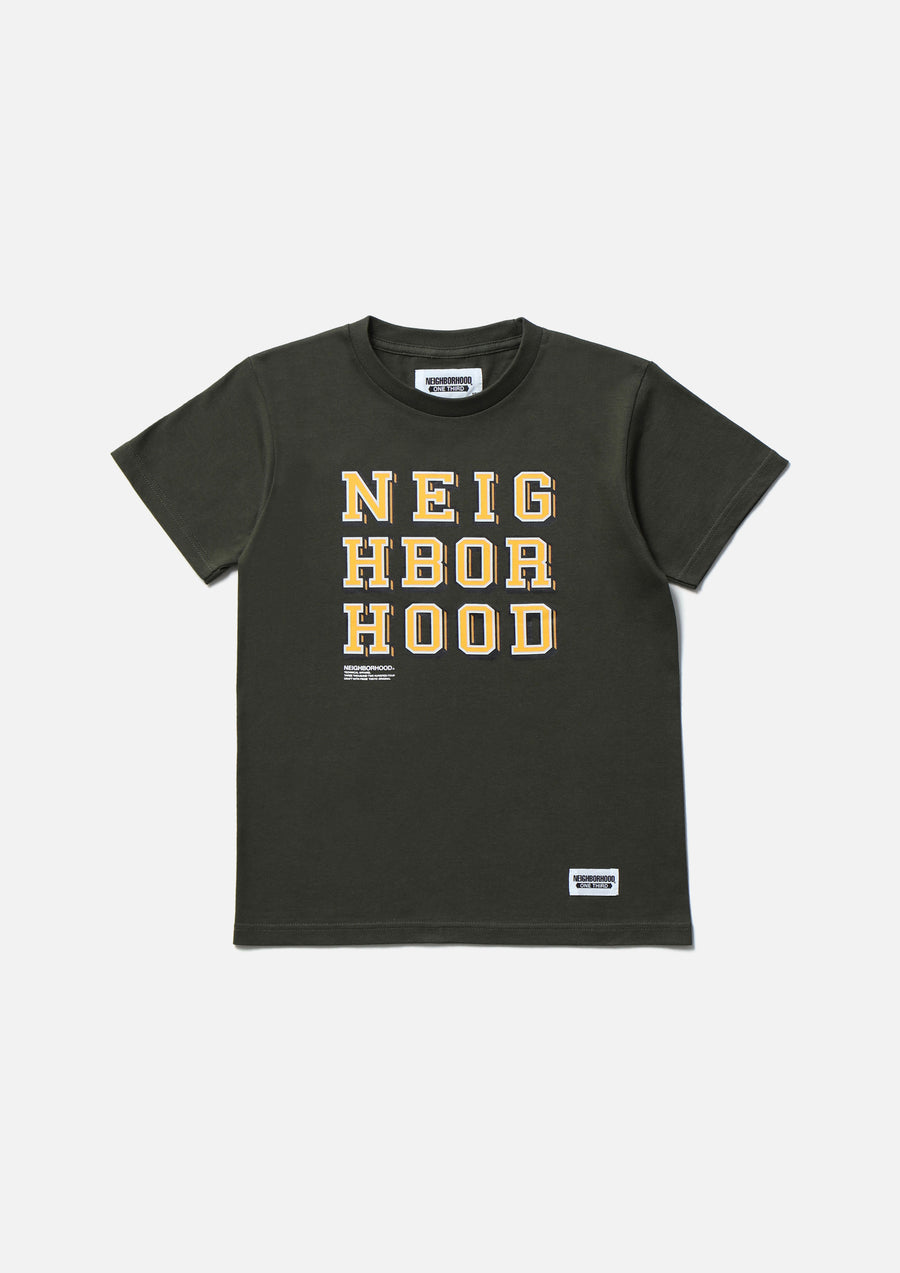 A short-sleeve T-shirt made of a 5.6oz heavyweight body. Graphic print on the front. A name tag is placed on the left hem.