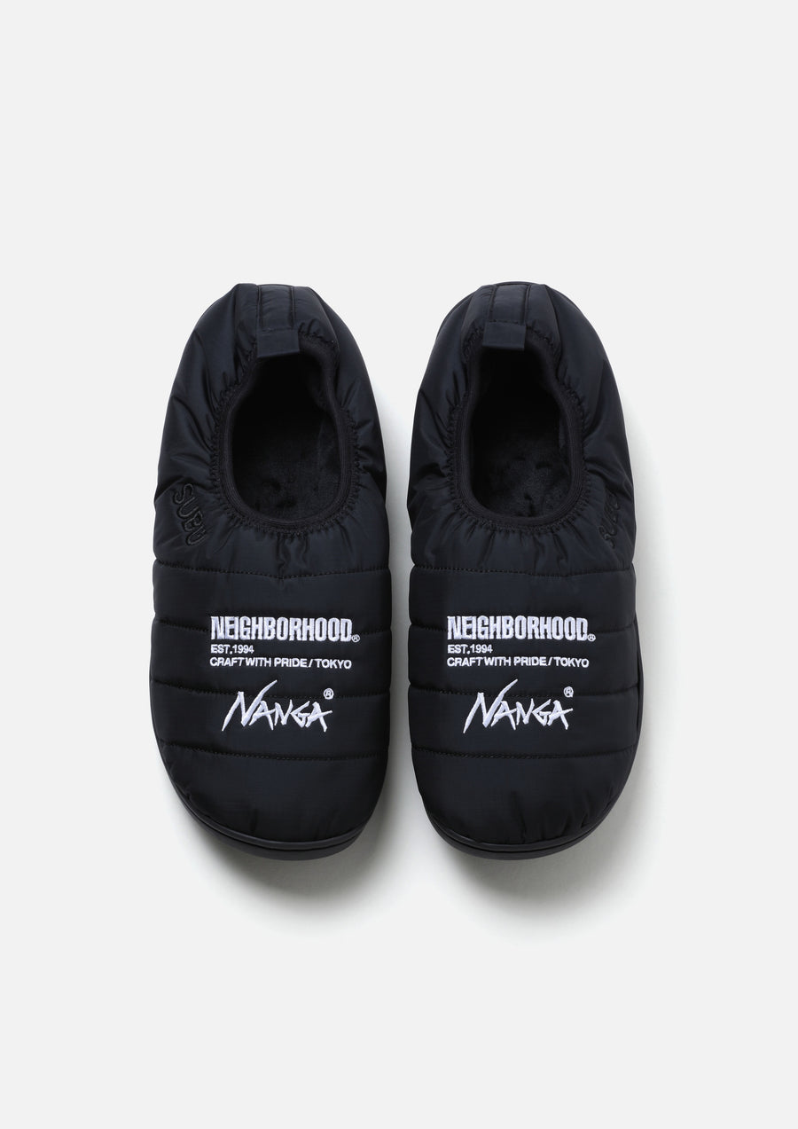 A collaborative item with NANGA and SUBU. This new VAMP room shoe features NANGA's proprietary fabric "Aurora-Tex®" for the upper, providing high weather resistance and insulation. The logo is embroidered on the upper.