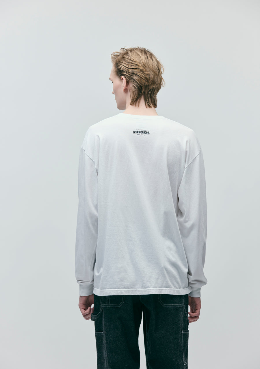 A long-sleeve T-shirt made of an original cotton jersey body. Flocked graphic print on the front. One-wash finish.