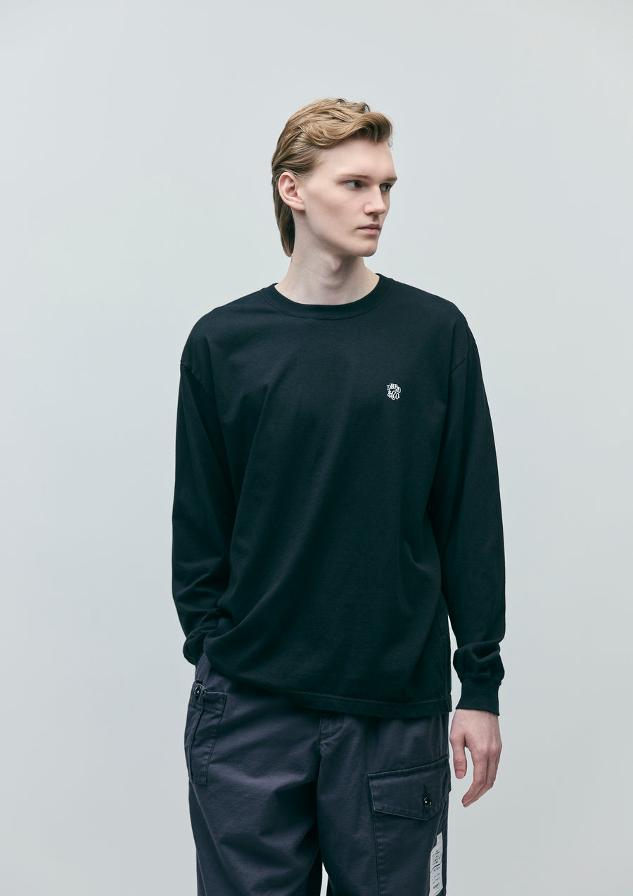 A long-sleeve T-shirt made of an original cotton jersey body. Embroidered logo on the left chest. One-wash finish.