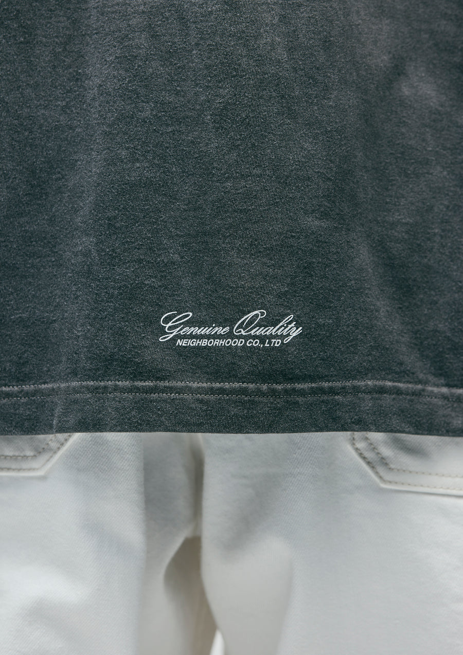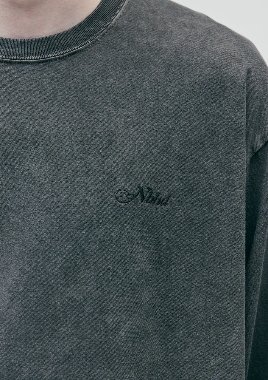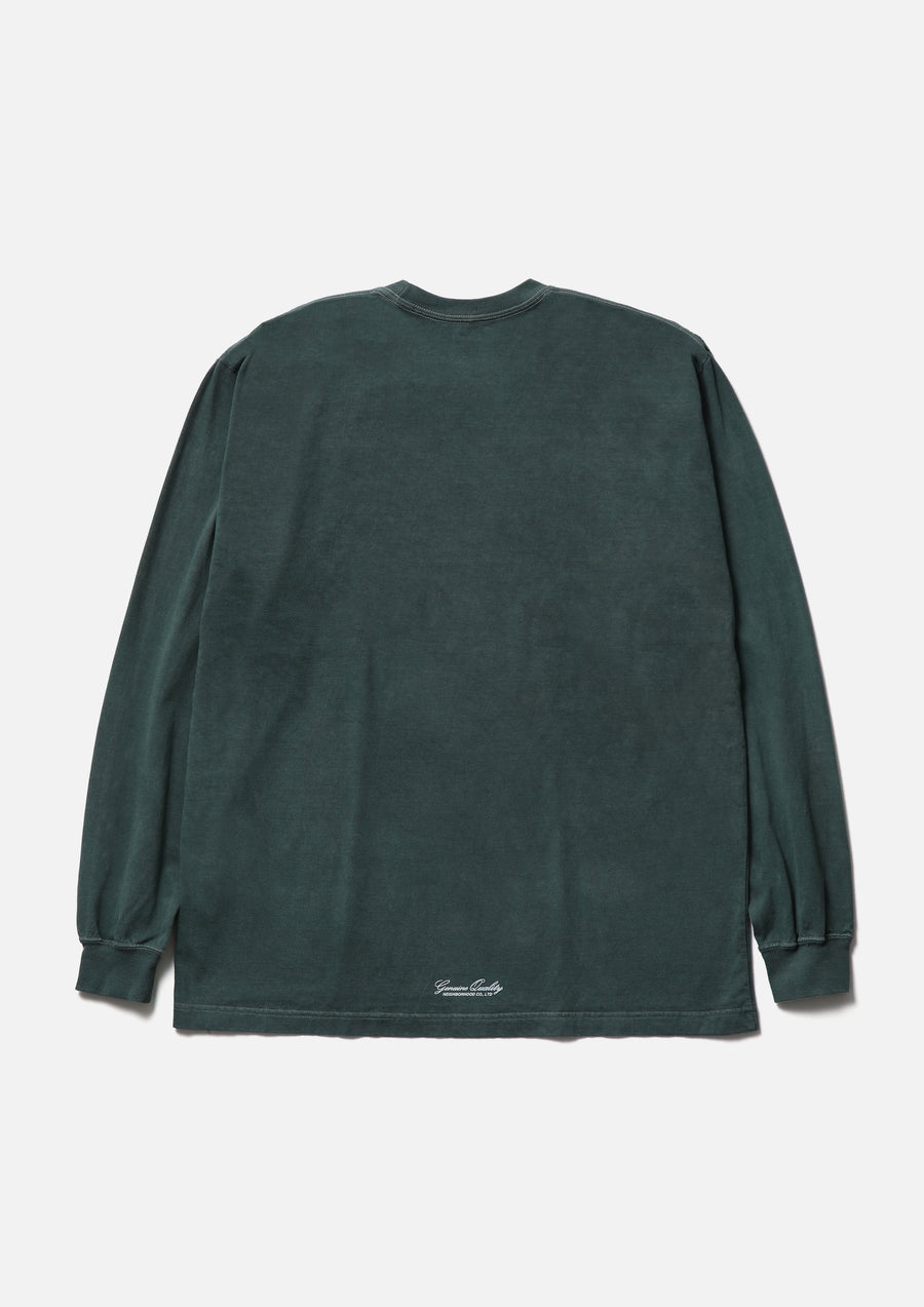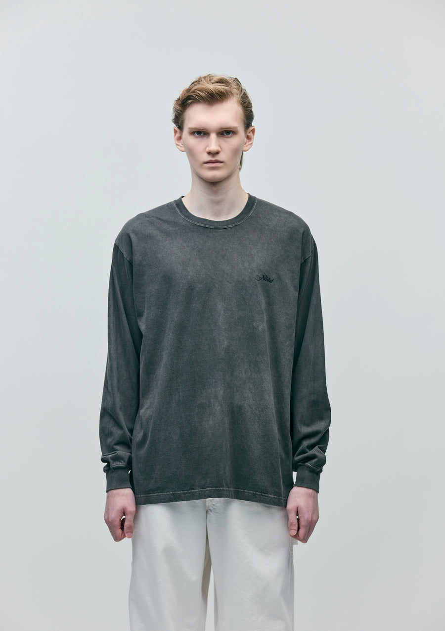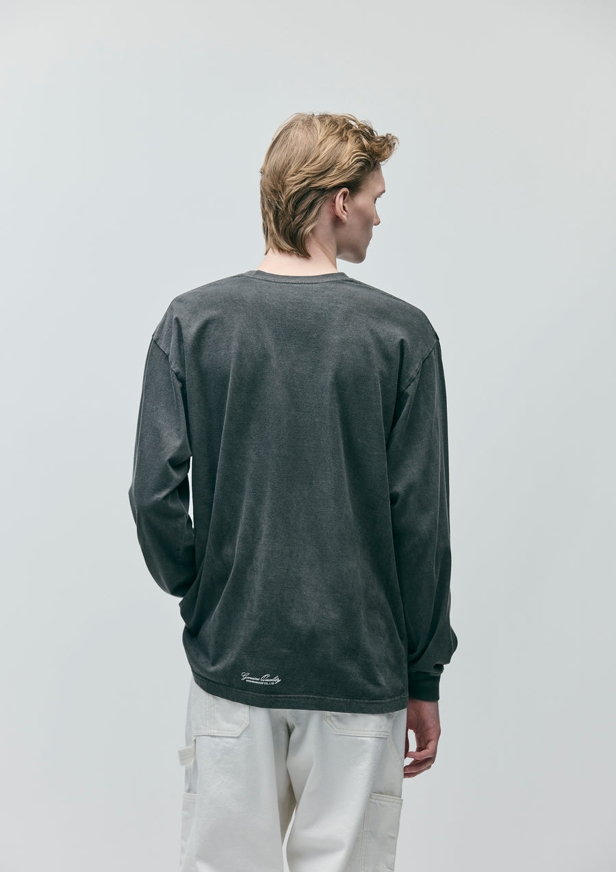 A long-sleeve T-shirt made of an original cotton jersey body, pigment-dyed for a unique finish. Embroidered logo on the left chest. One-wash finish.