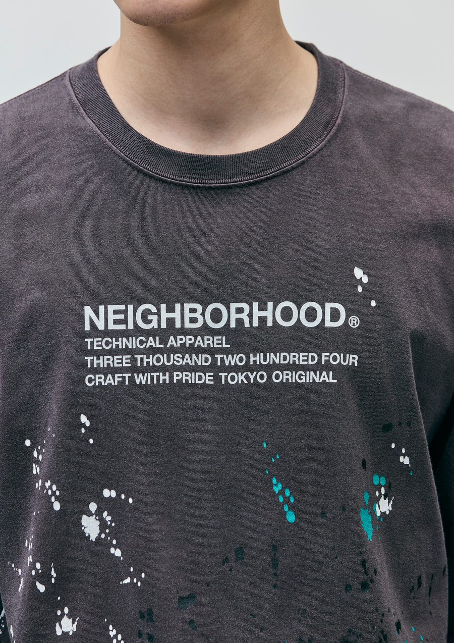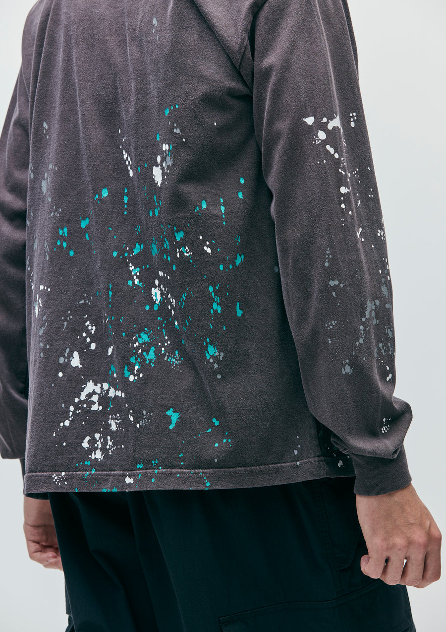 A long-sleeve T-shirt made of an original cotton jersey body, pigment-dyed for a unique finish. Printed logo with a paint-drip motif. One-wash finish.