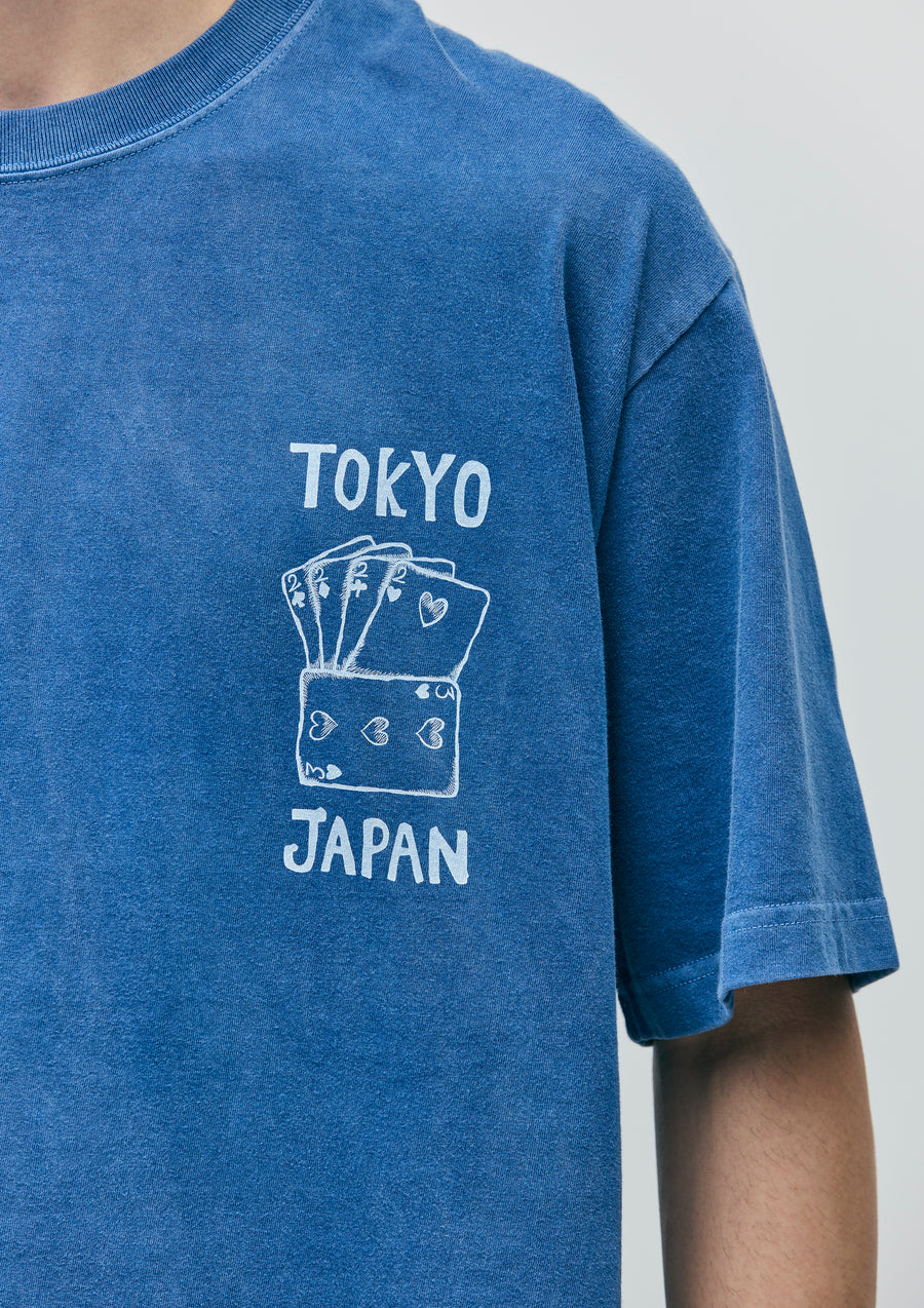 A short-sleeve T-shirt made of an original cotton jersey body, pigment-dyed for a unique finish. Printed graphics on the left chest and back. One-wash finish.
