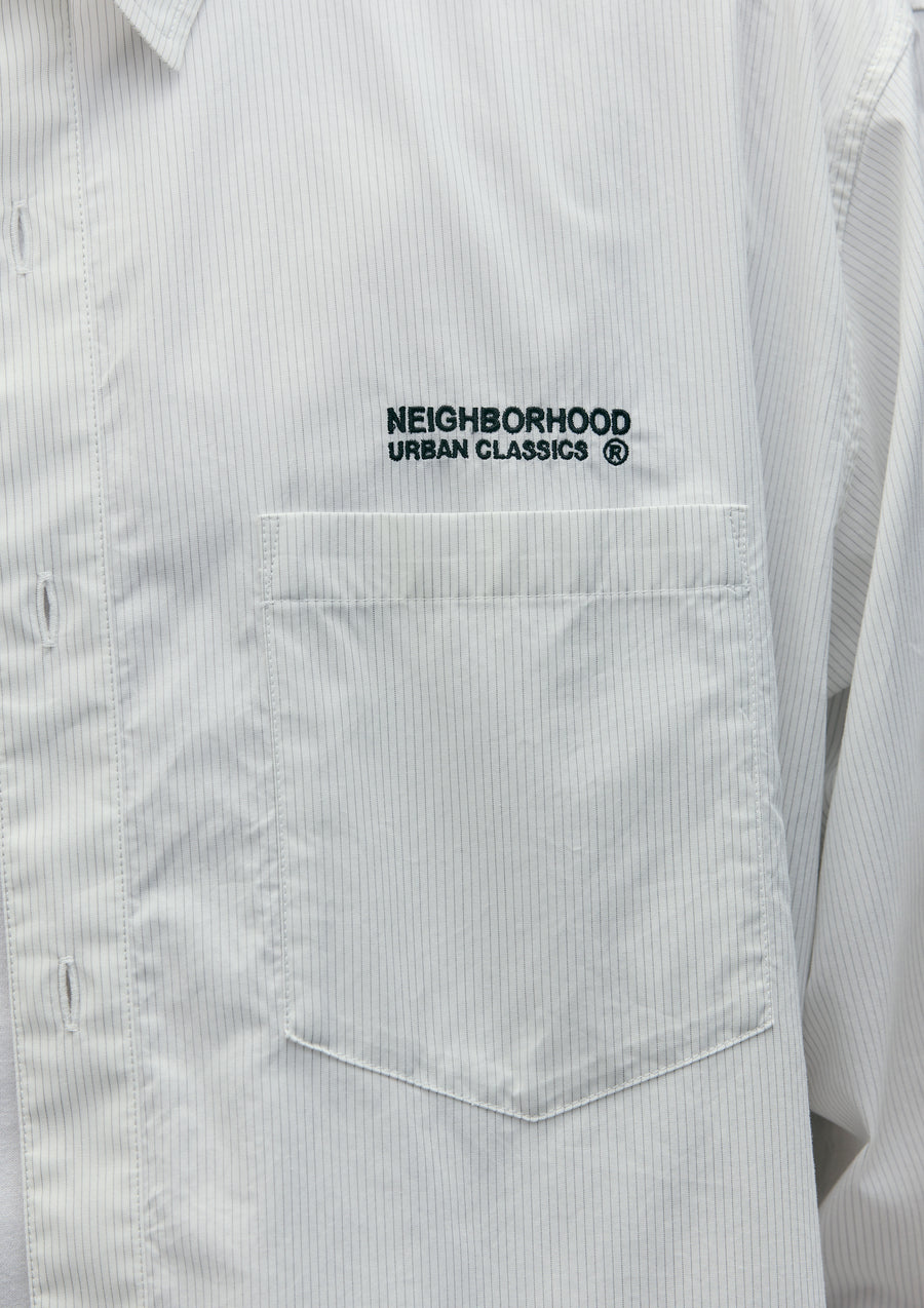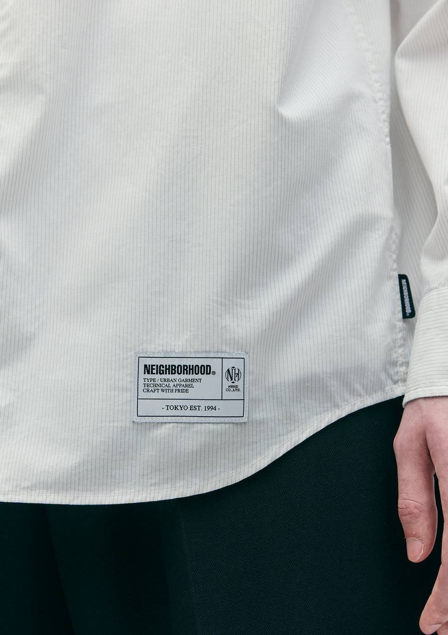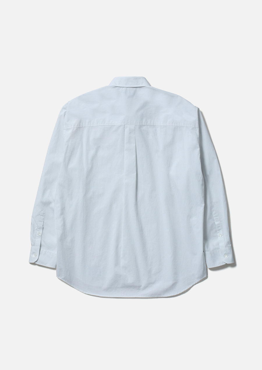 A striped shirt made from poplin fabric, offering both firmness and suppleness. Embroidered logo on the left chest. Equipped with original shell-like buttons, a brand tag on the left hem and side seam. One-wash finish.