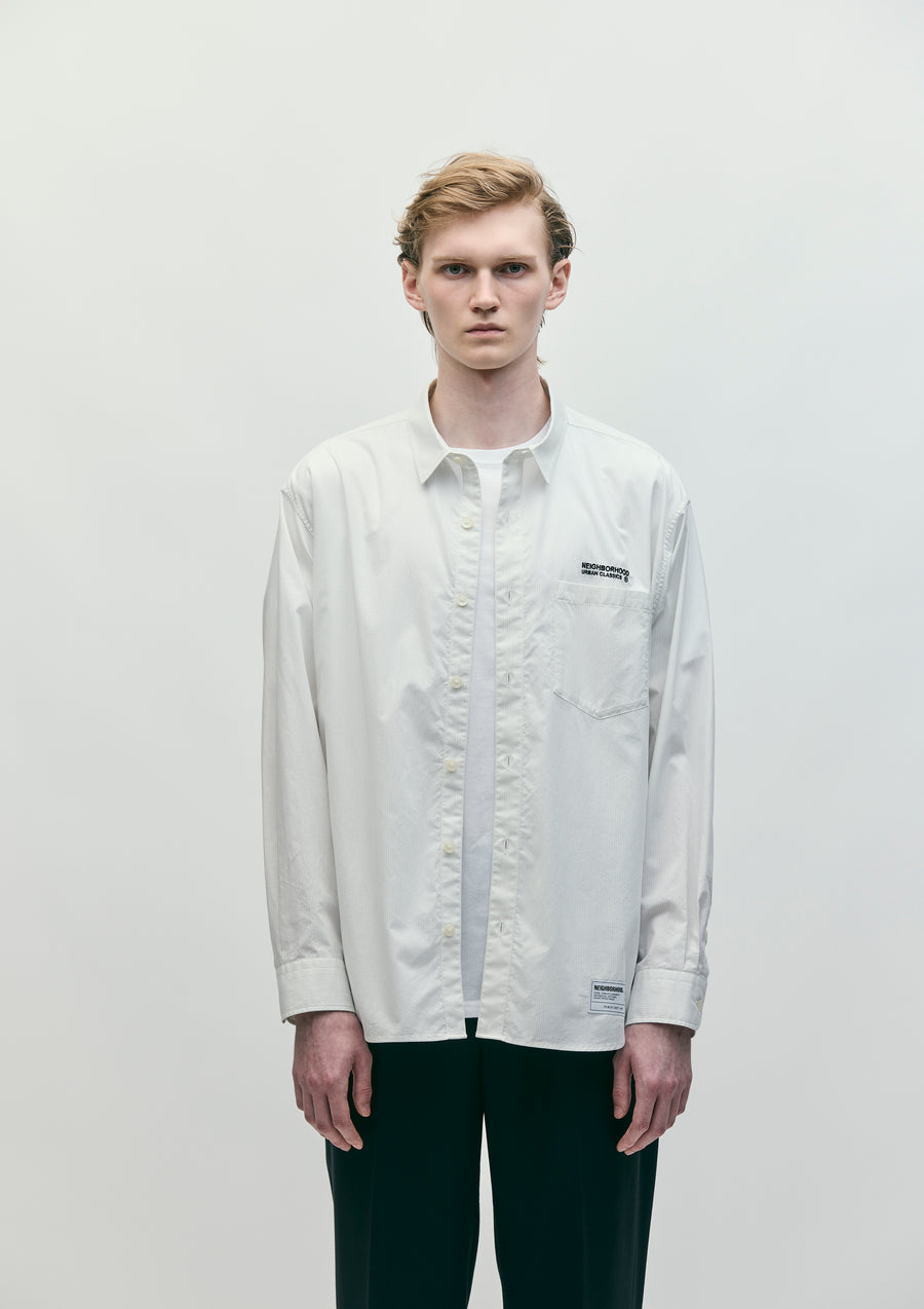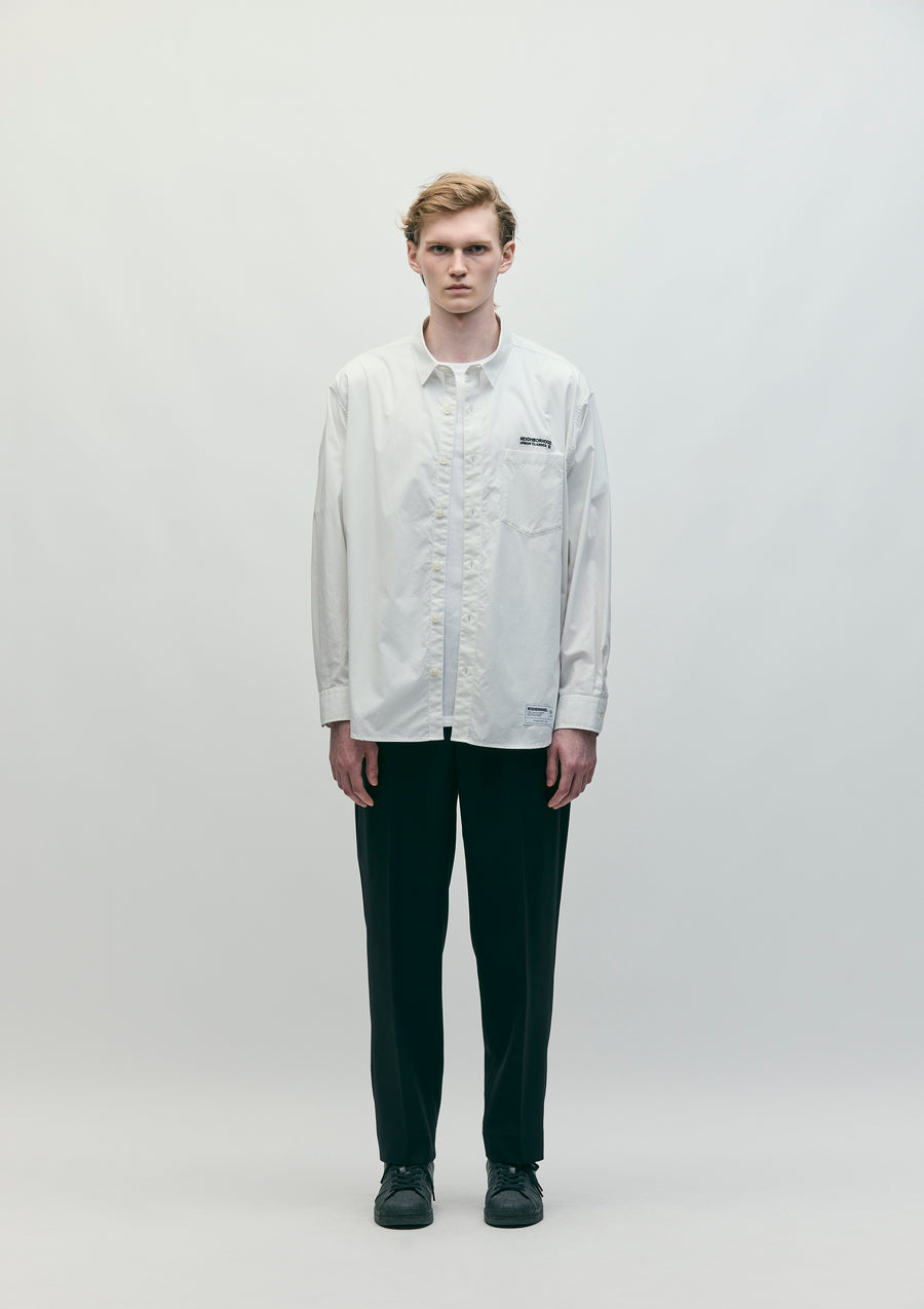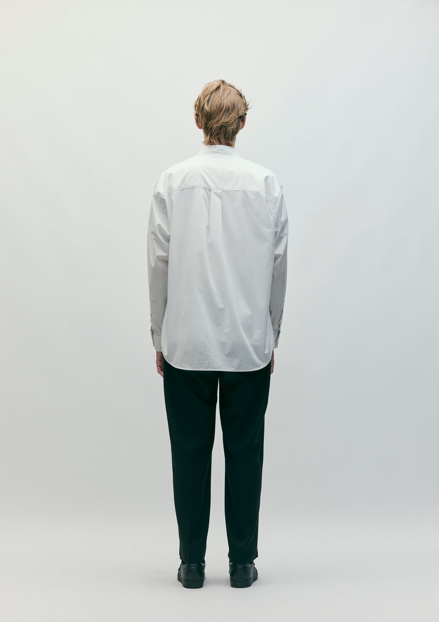 A striped shirt made from poplin fabric, offering both firmness and suppleness. Embroidered logo on the left chest. Equipped with original shell-like buttons, a brand tag on the left hem and side seam. One-wash finish.