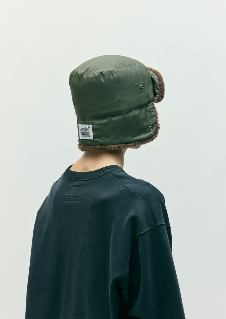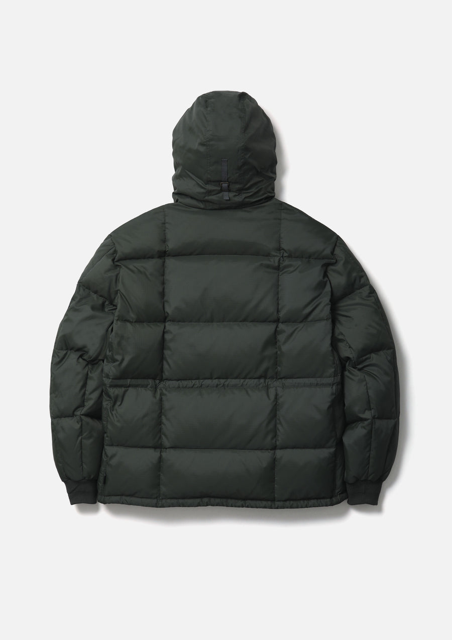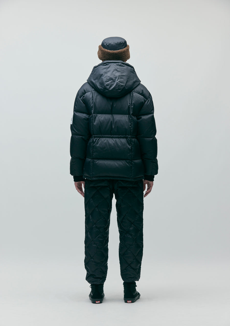 A Karakoram down jacket made from nylon ripstop fabric with firmness, resilience, and a subtle sheen. Based on the “Karakoram,” a mountaineering down parka with distinctive box quilting and one of the signature outerwear pieces of Eddie Bauer, the outdoor brand founded in Seattle, USA in 1920. The design retains its classic details while updating the sizing. Equipped with adjustable drawcords at the waist and hem. Finished with original buttons and collaboration name tags at the left hem and sleeve.