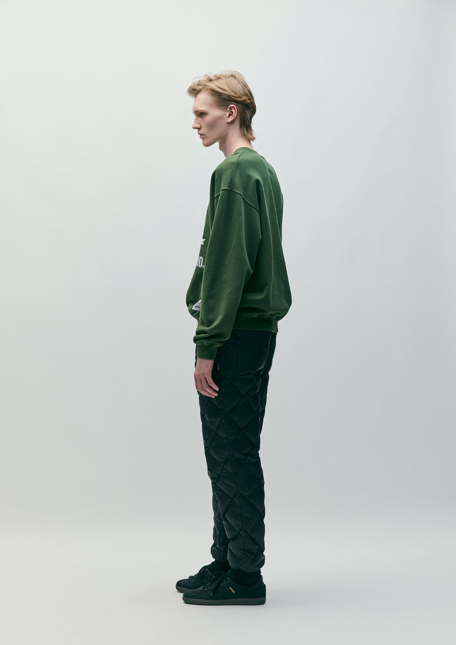 Down pants made from nylon ripstop fabric with firmness, resilience, and a subtle sheen. Slash pockets are set into the side seams, with button-flap pockets on the back. The elastic waistband features a snap-button closure and an internal adjustable drawcord. Ribbed cuffs at the hem. Finished with a collaboration name tag and a brand tag on the side seam. A joint work item with Eddie Bauer, the outdoor brand founded in Seattle, USA in 1920.