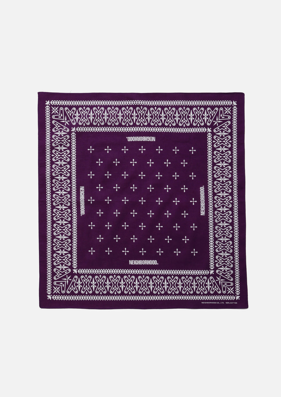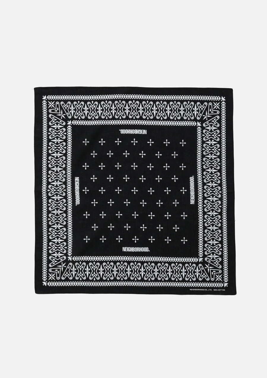 Bandana made from cotton compas fabric. Features an original cross pattern print, with rolled-hem stitching at the edges.