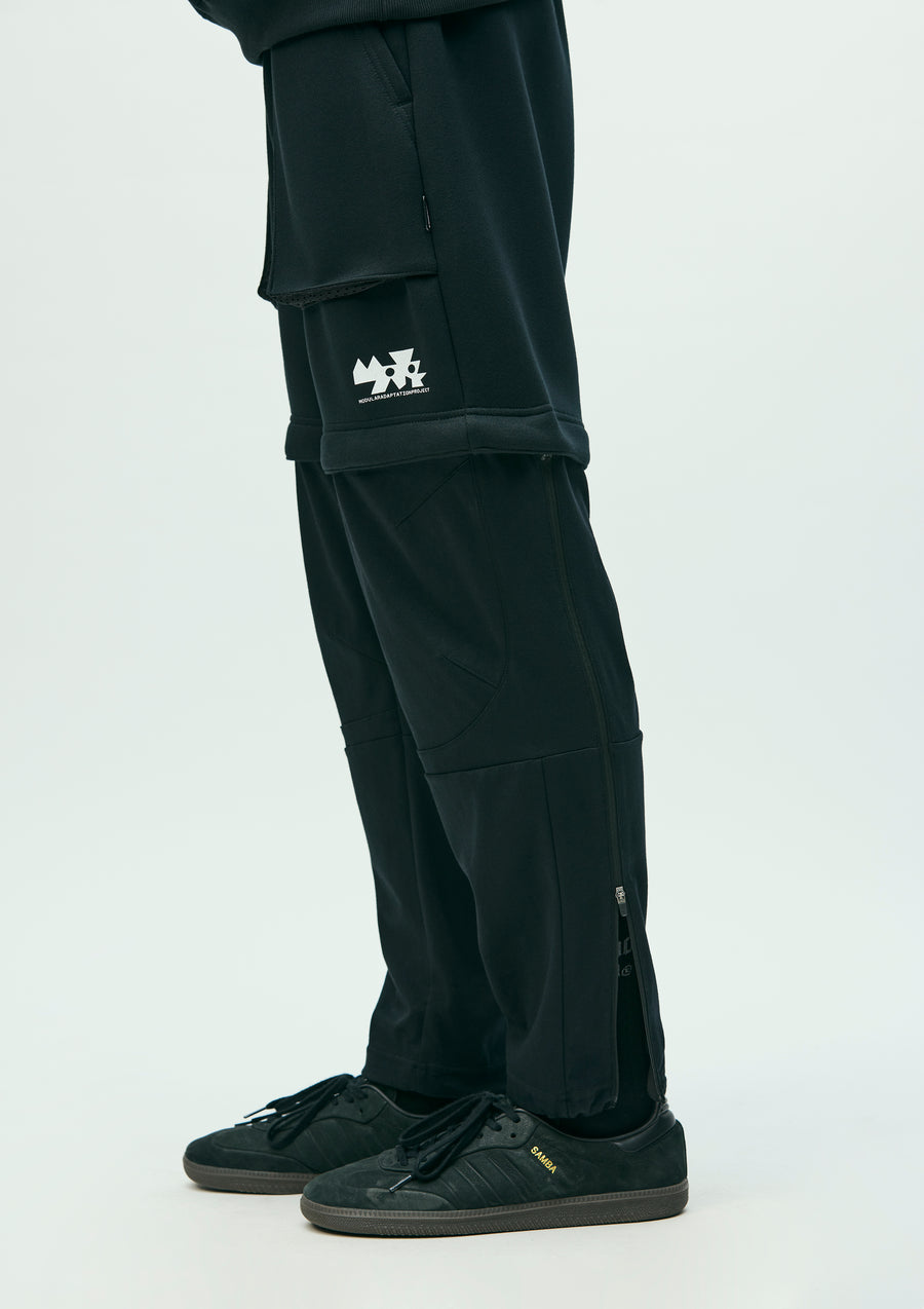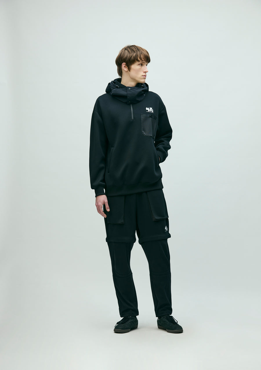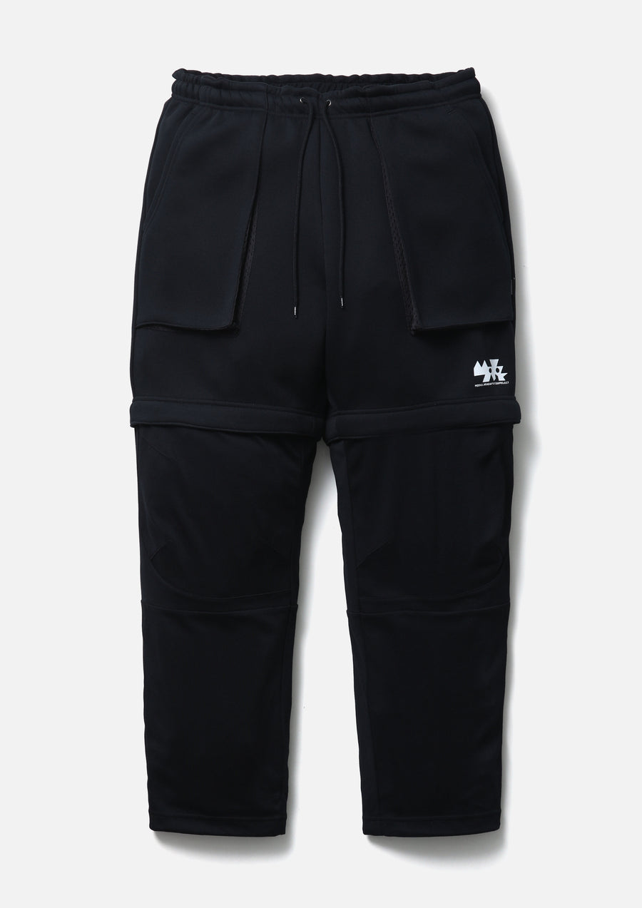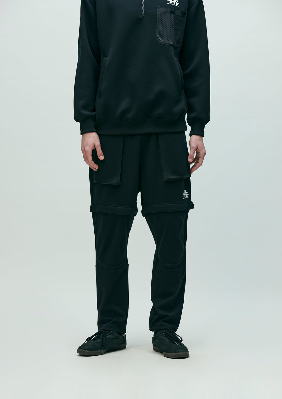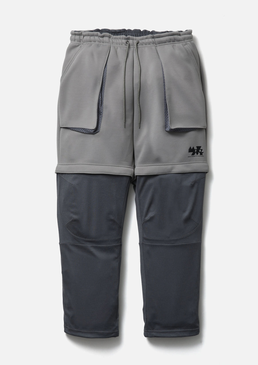 MAP Convertible Pants (2-Way: Long/Short) made from a combination of ECO BLUE® recycled polyester-blend double-knit fabric, offering softness and structure, and ICE PACK NYLON® blend reverse-knit fabric, providing excellent moisture control and a cooling effect. Designed so the lower pant legs can be detached via zippers without removing shoes. Features a printed logo on the left hem of the shorts and a woven side label at the side seam. The hem of the long pant portion is equipped with an adjustable elastic drawcord.