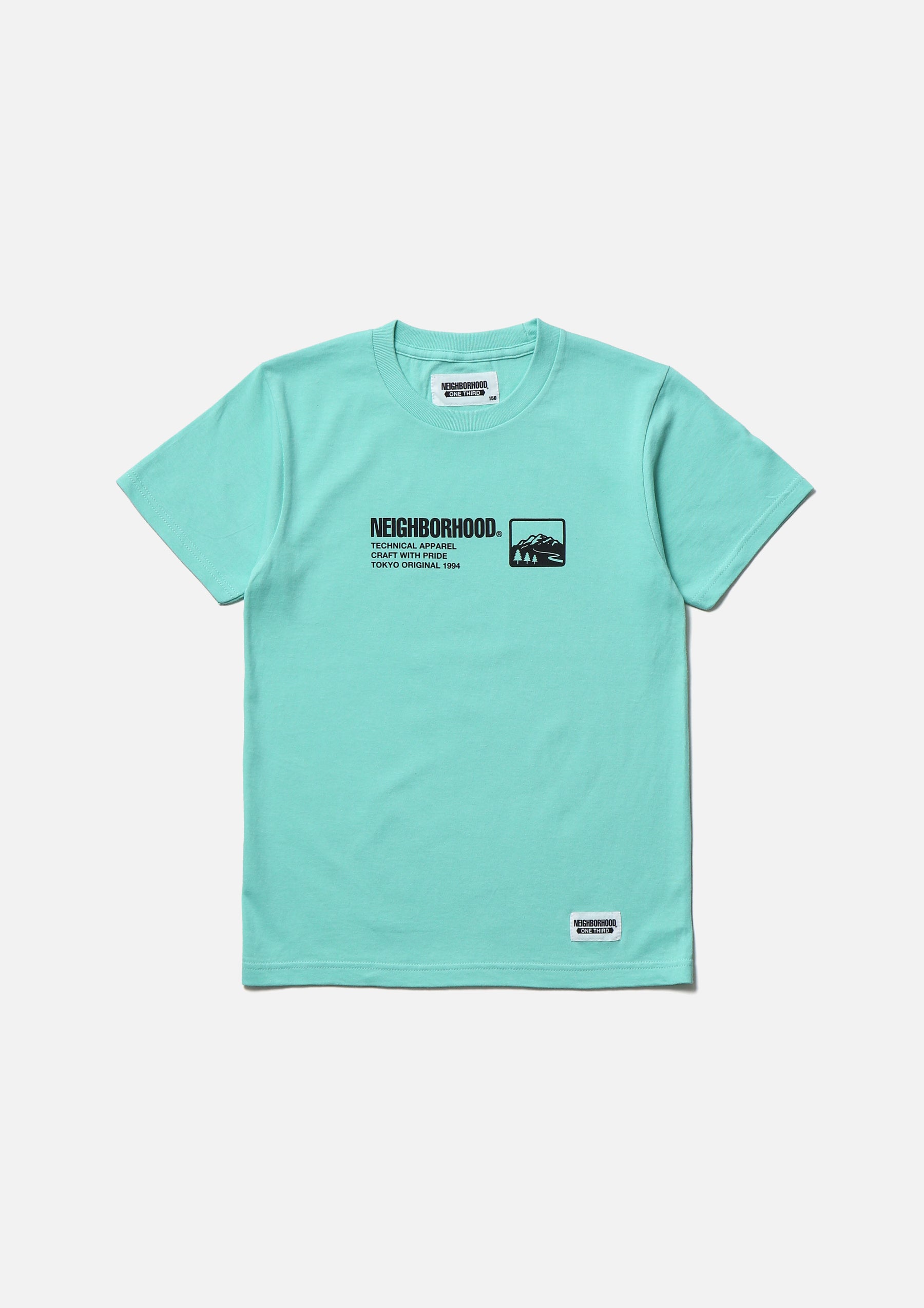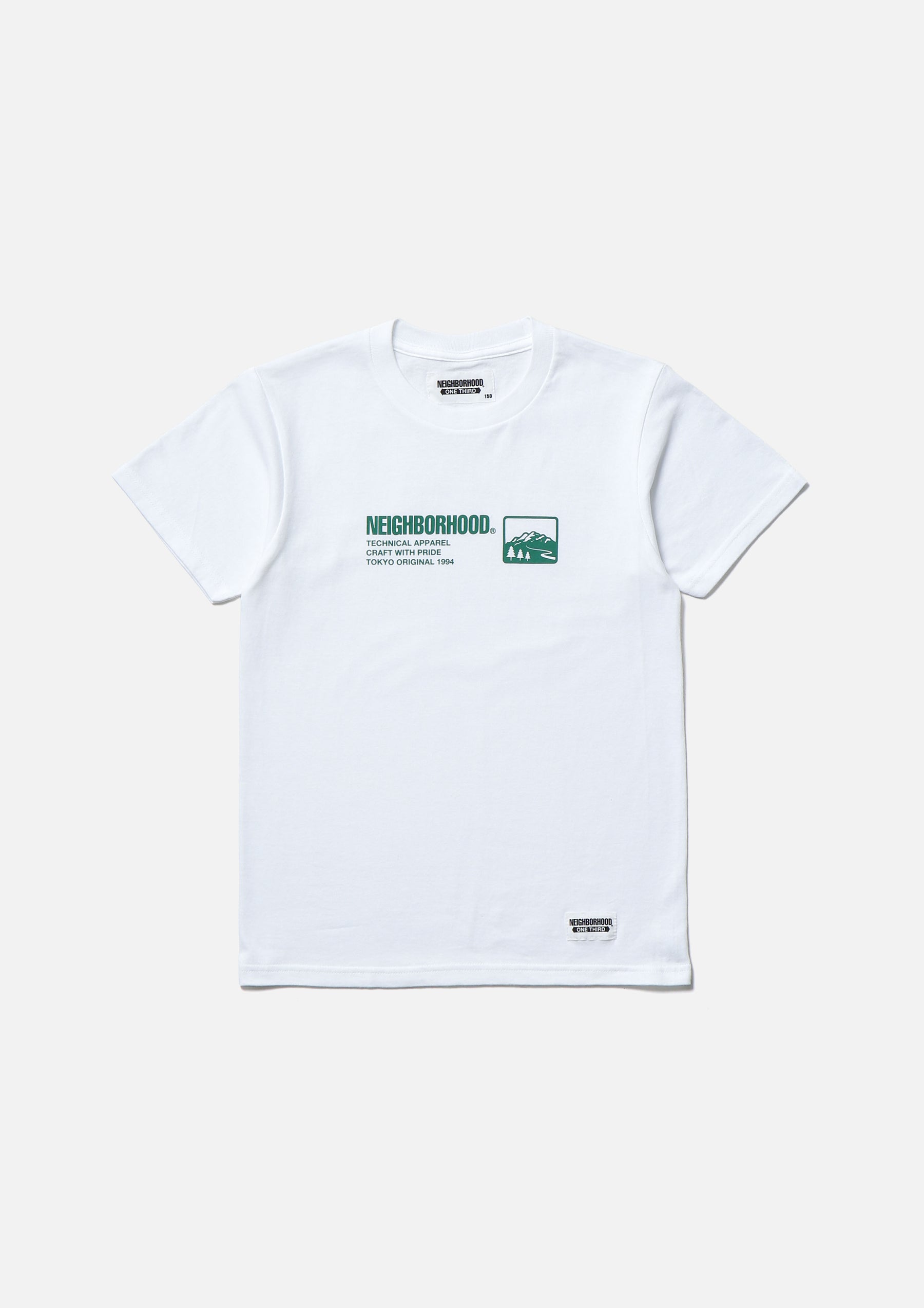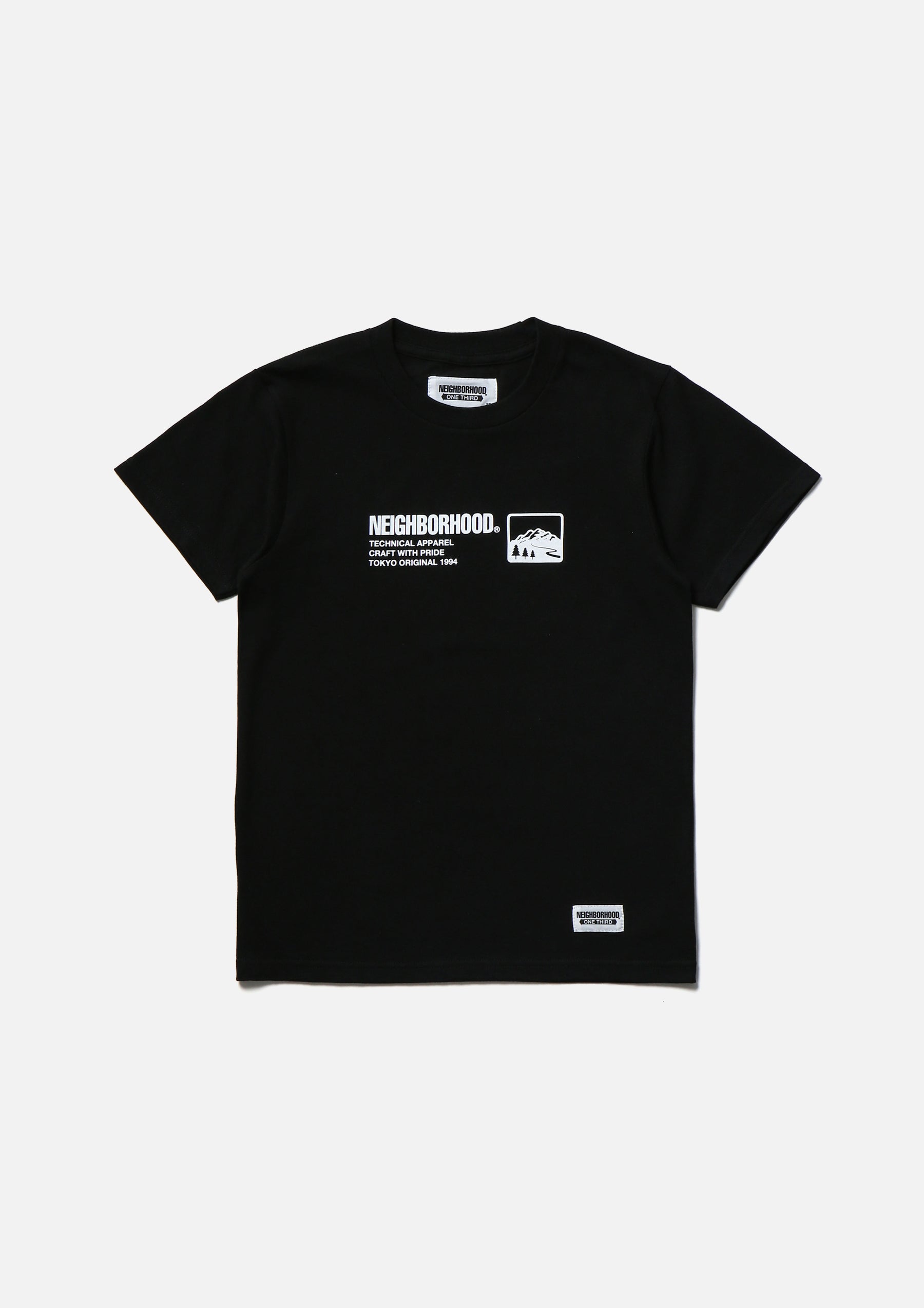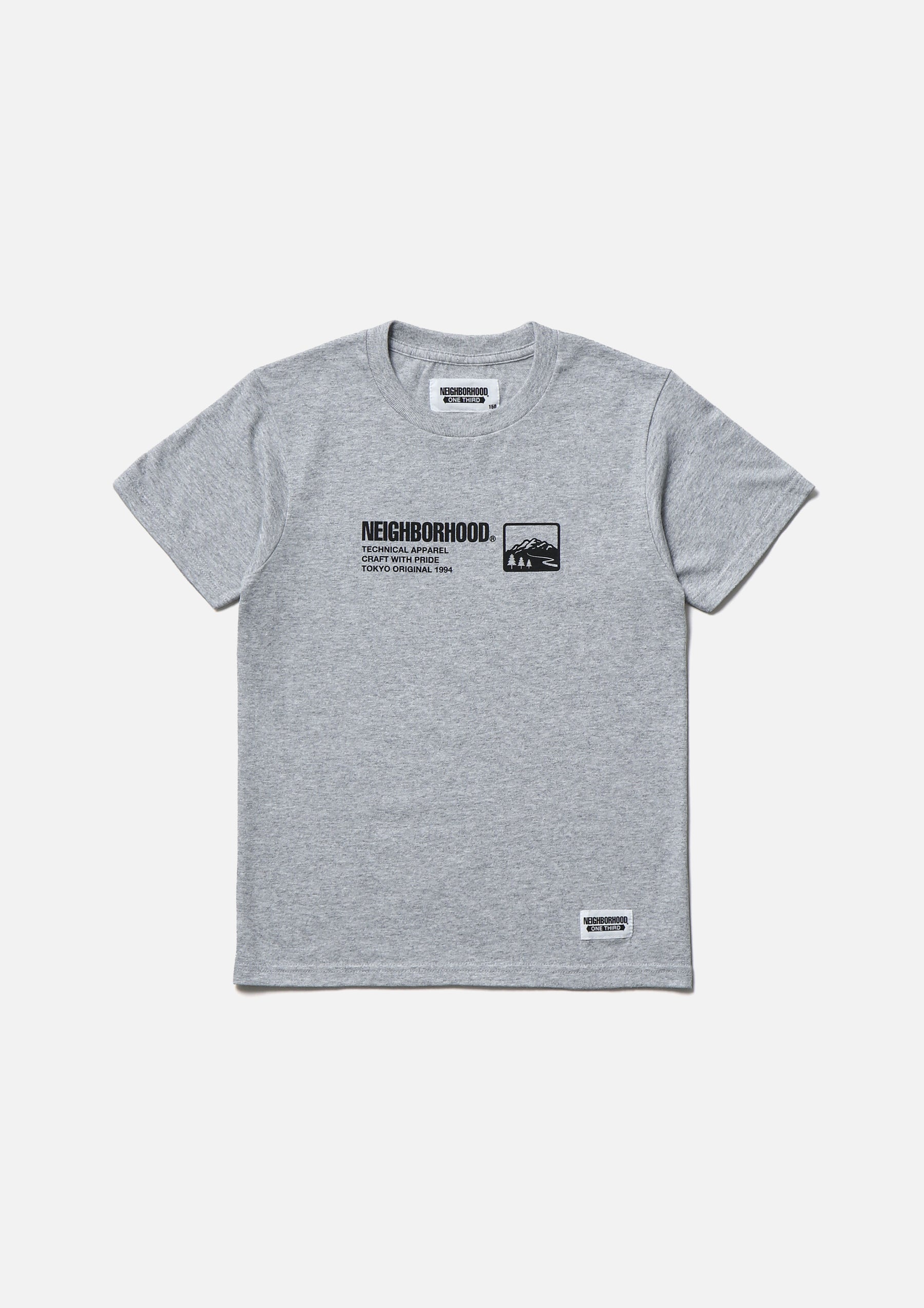 Short sleeve T-shirt made of 5.6oz heavyweight body. Logo printed on the front. Brand tag at the left hem.