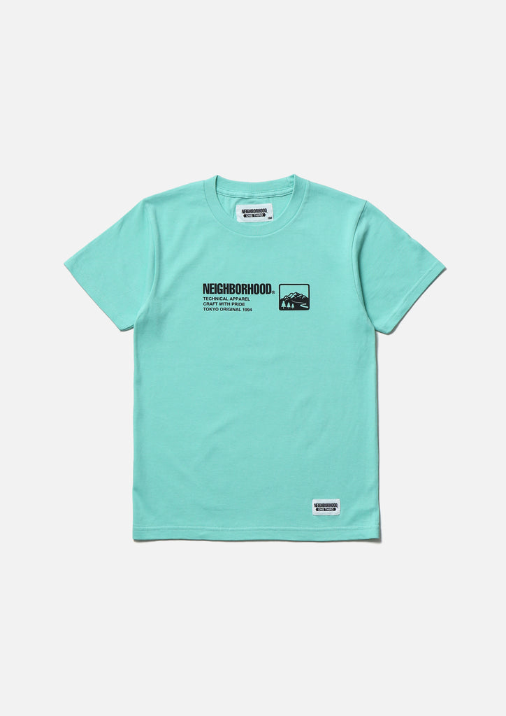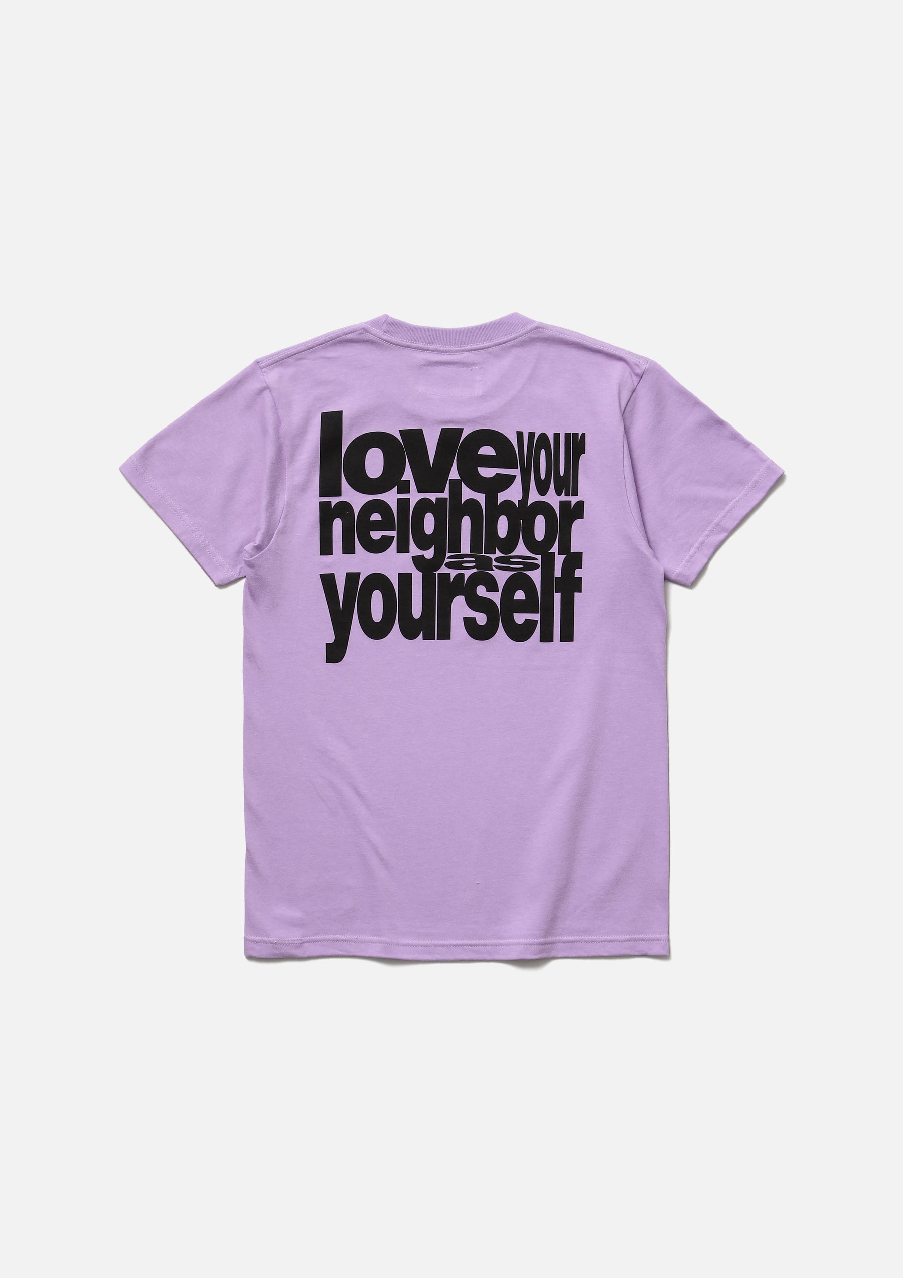 Short sleeve T-shirt made of 5.6oz heavyweight body. Graphic printed on the front and back. Brand tag at the left hem.